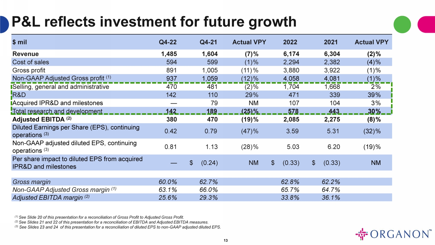 | (2) | 調整後EBITDAおよび調整後EBITDAマージンには、2022年第4四半期には買収したIPR&Dがなく、2021年第4四半期には買収したIPR&Dおよびマイルストーンに関連する7900万ドルが含まれています。 |