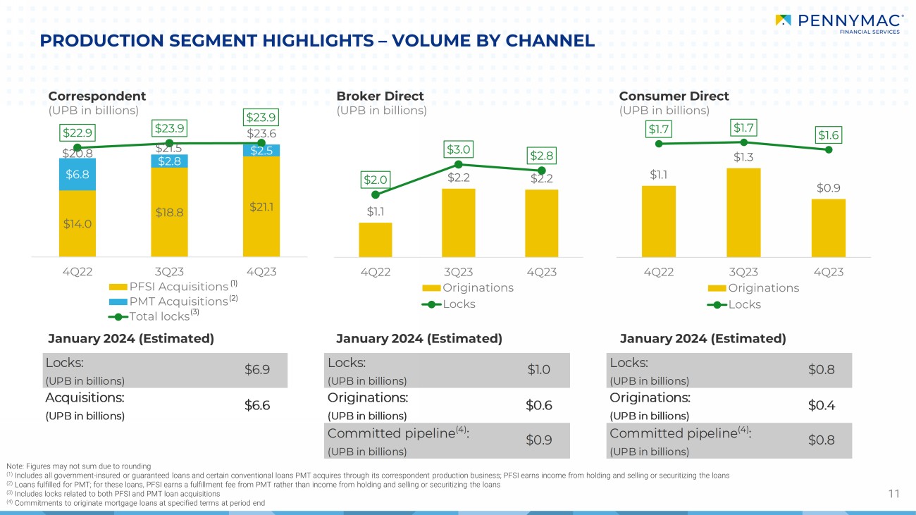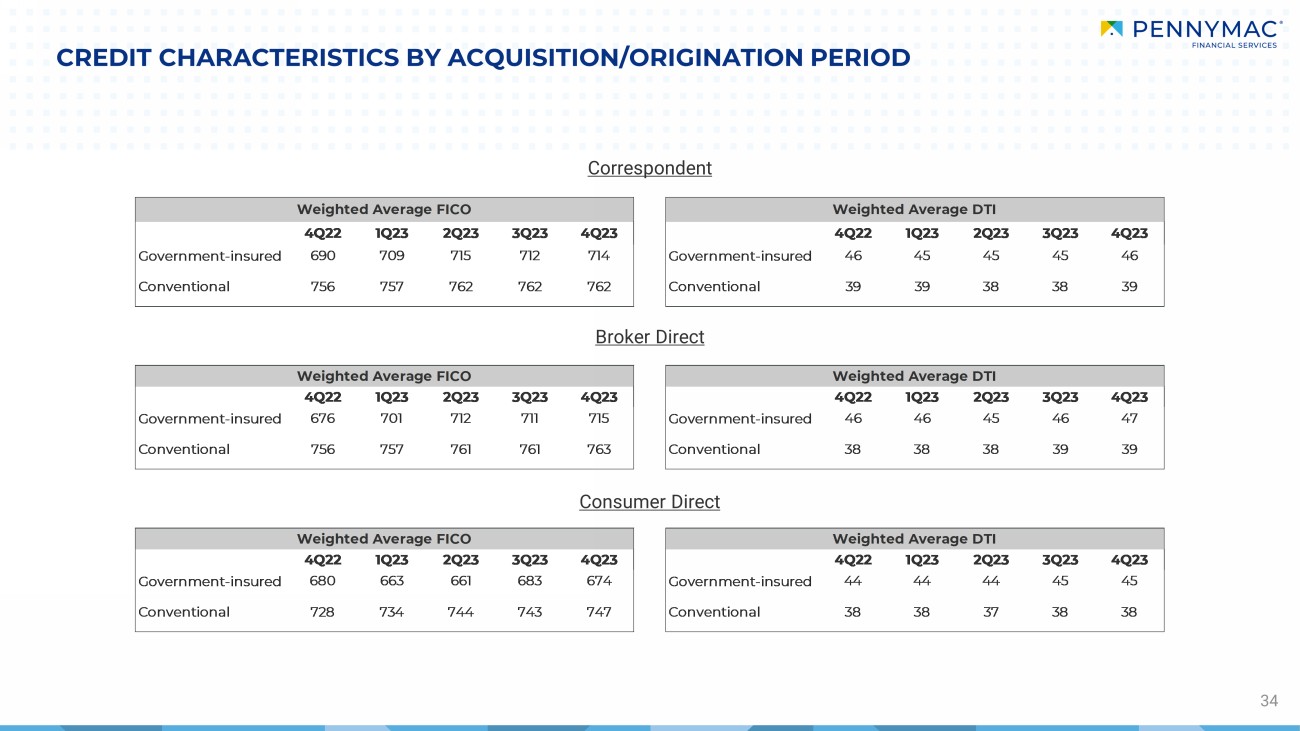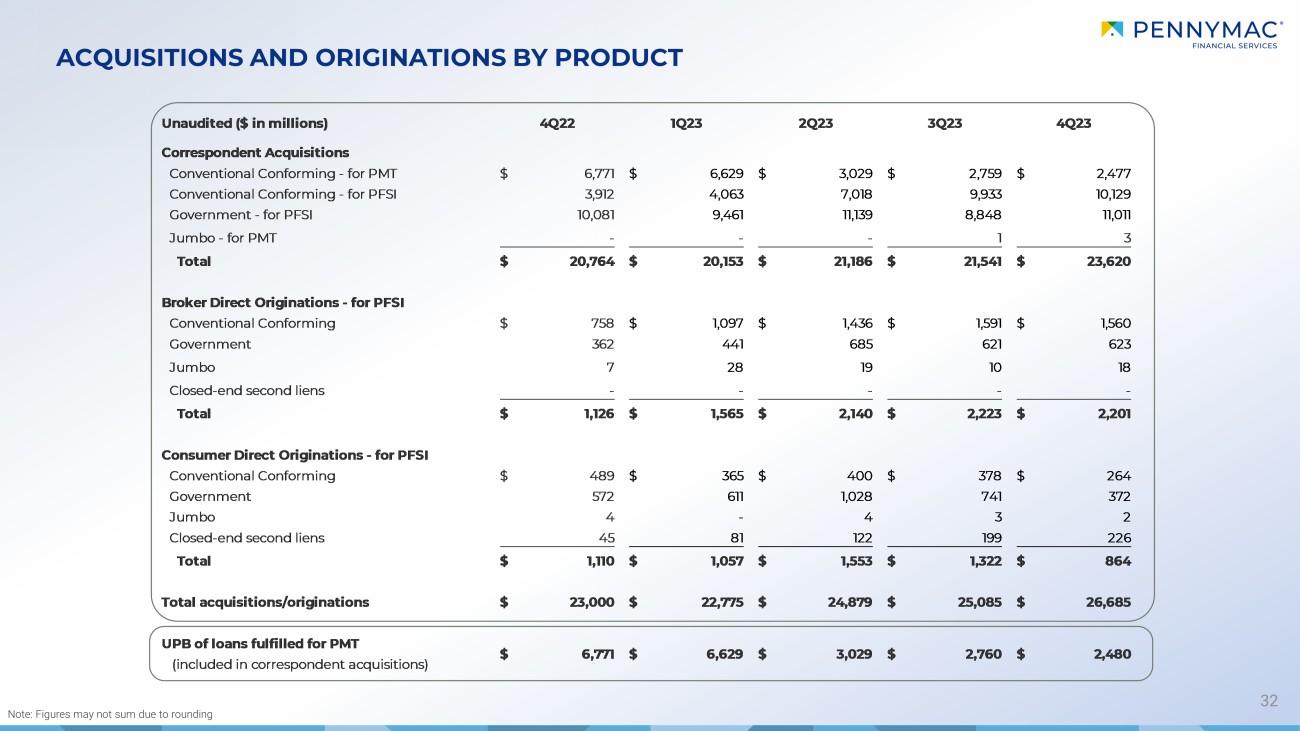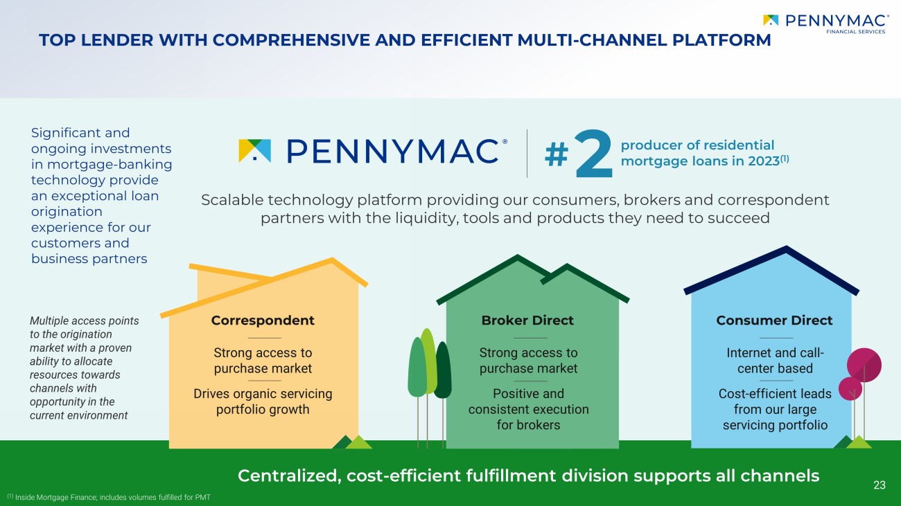 | o | ペニーマック・モーゲージ・インベストメント・トラスト(NYSE: PMT)のコンベンショナル・コンフォーミング・ローンのコレスポンデントによる取得額は、UPBで25億ドルとなり、前四半期から10%減少、2022年第4四半期から63%減少した。 |