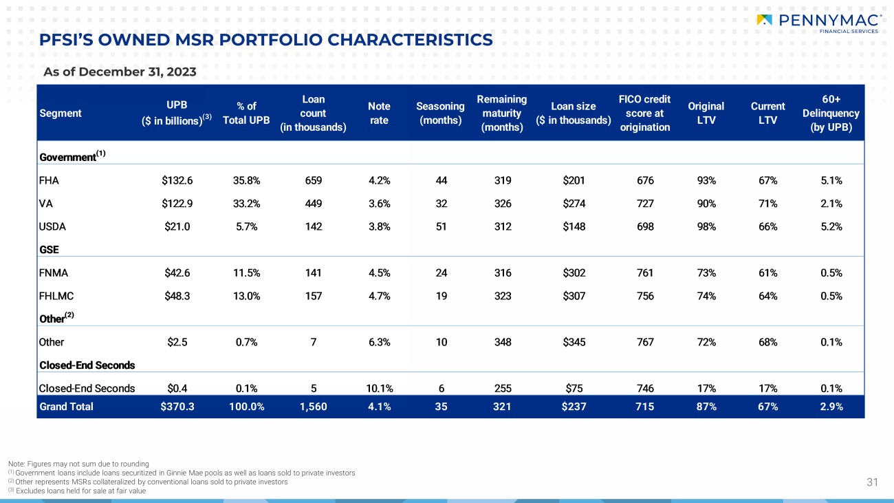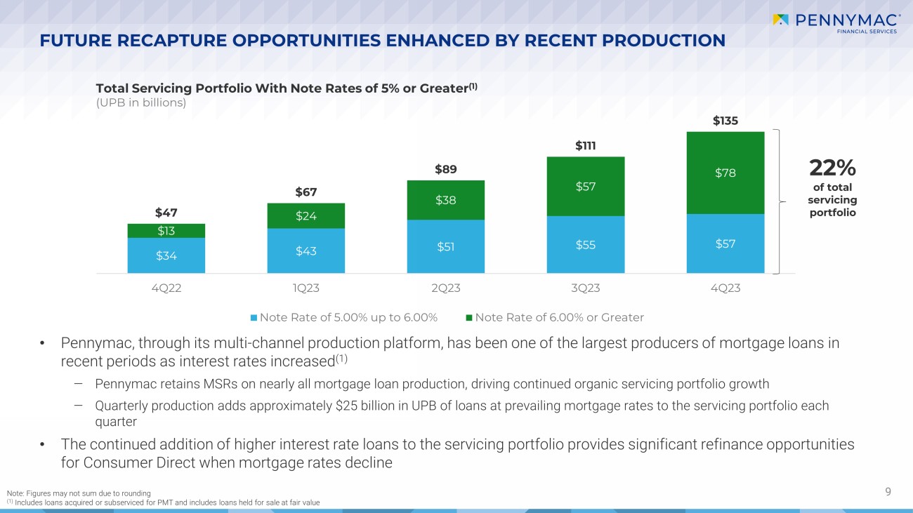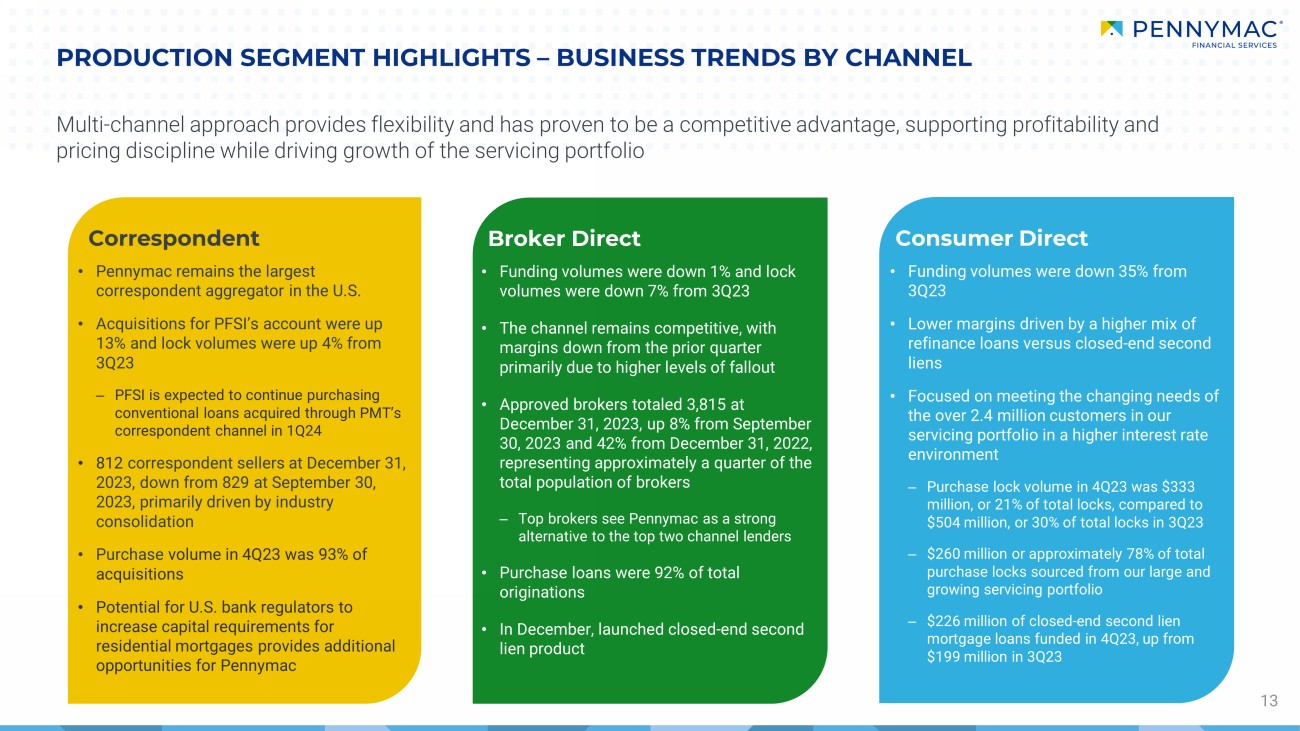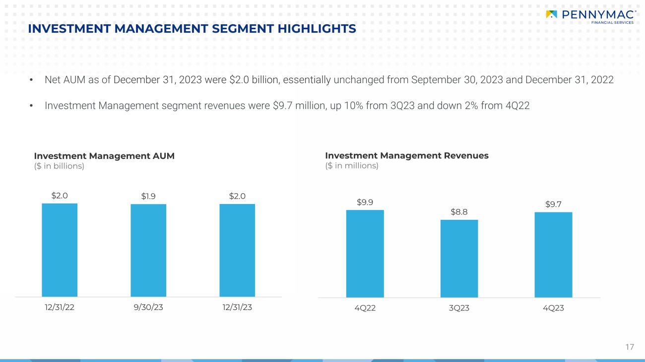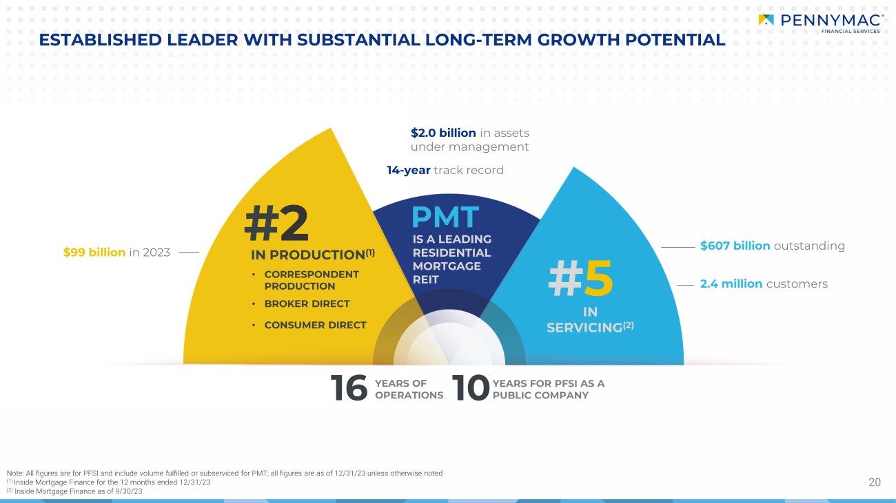 | o | ペニーマック・モーゲージ・インベストメント・トラスト(NYSE: PMT)のコンベンショナル・コンフォーミング・ローンのコレスポンデントによる取得額は、UPBで25億ドルとなり、前四半期から10%減少、2022年第4四半期から63%減少した。 |