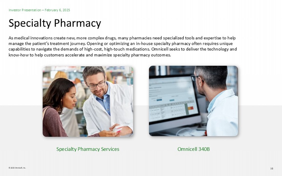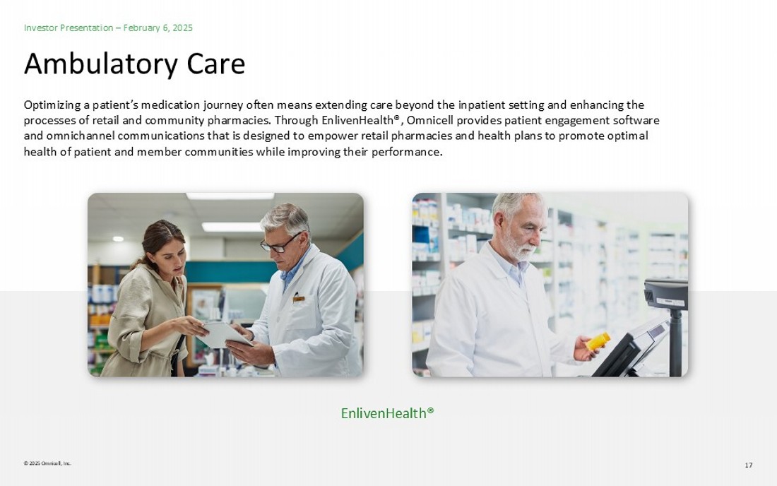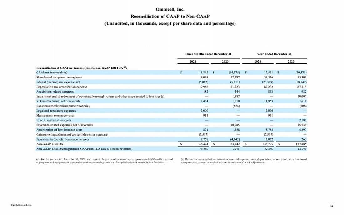 テキサス州フォートワース-- 2025年2月6日 -- 薬局と介護の提供モデルを変革するリーダー企業であるオムニセル社(NASDAQ:OMCL)(以下「オムニセル社」)は本日、2024年12月31日を期末とする会計年度および第4四半期の業績を発表した。