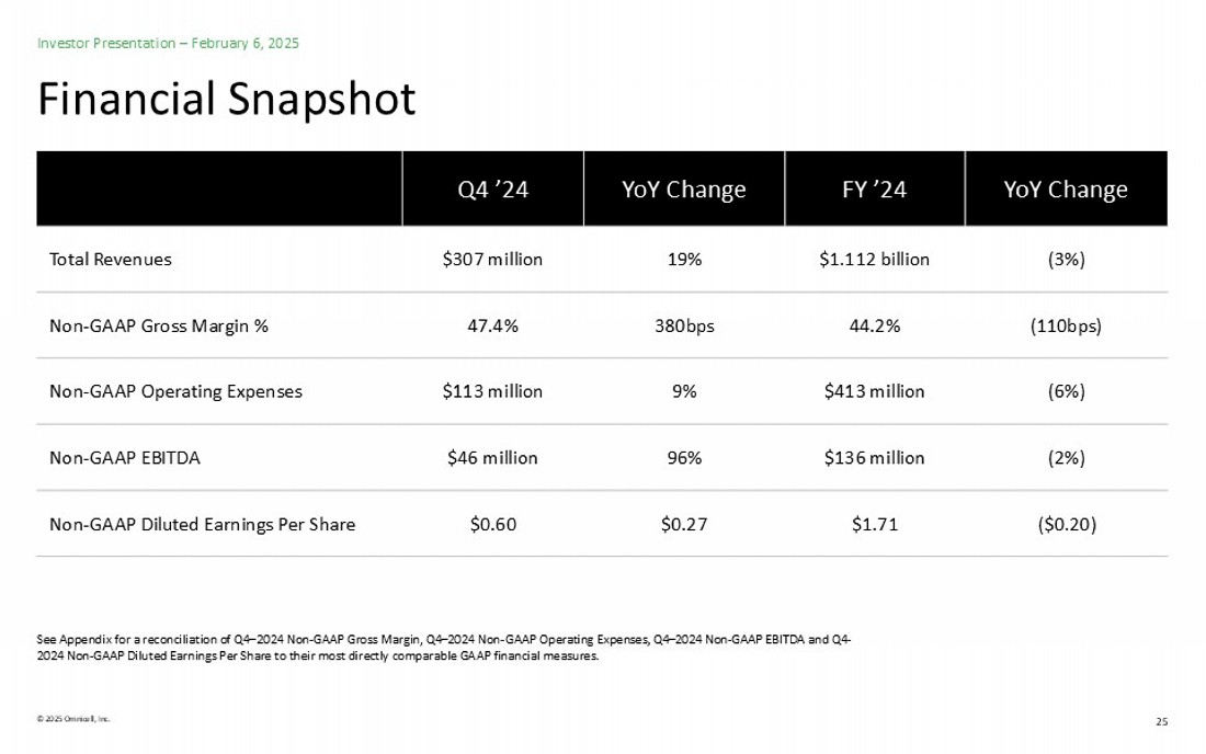 以下の表は、オムニセルの2025年第1四半期および通年のガイダンスの要約である: