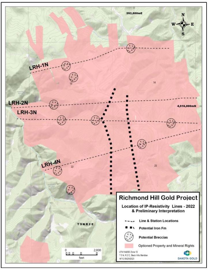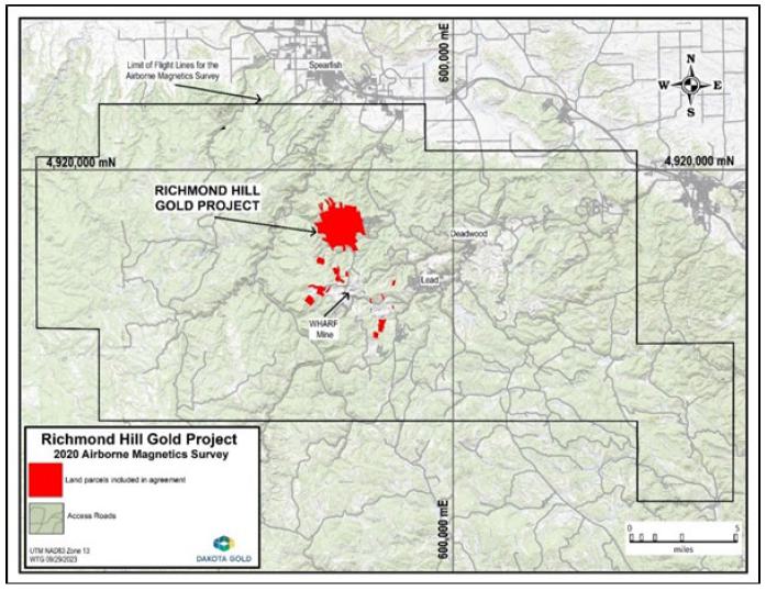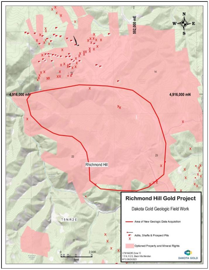 Richmond Hill is expected to have economics similar to the adjacent Wharf Mine of Coeur Mining, which is expected to generate over $100 million in free cash flow in 2024 from approximately 90,000 ounces of gold. The Richmond Hill Oxide Heap Leach Gold Project is located primarily on previously mined, private land and we believe we can advance the project expeditiously through permitting, development, and into production. The non-binding financial proposal for up to $300 million for a development opportunity with Orion Mine Finance, our major shareholder, which was announced on October 12, 2023, could provide Dakota Gold with the financial pathway to a commercial gold operation.