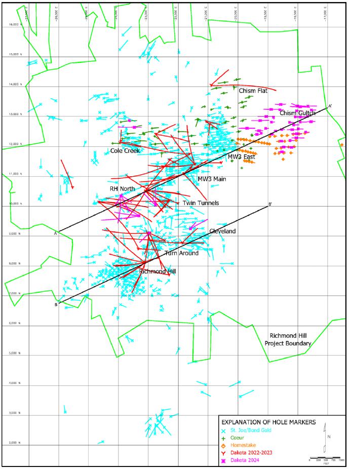 James Berry, VP Exploration commented, “The results of the new resource for Richmond Hill have exceeded our expectations and showcase the extent and quality of the Project mineralization. The step-out drilling incorporated in this update was very successful as evidenced by the expanded resource. Drilling encountered gold mineralized material in nearly every hole and also encountered higher silver grades than those in the other areas of the resource. We look forward to doing follow-up drilling in the northeastern portion of the Project as well as the other target areas outlined in the Report in anticipation of a further resource expansion in 2025.”