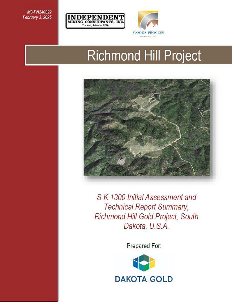 LEAD, SOUTH DAKOTA – Dakota Gold Corp. (NYSE American: DC) (“Dakota Gold or the “Company”) is pleased to announce its S-K 1300 Initial Assessment (“Initial Assessment” or “Report”) has outlined a robust resource1 focused on heap leachable material at the Richmond Hill Oxide Heap Leach Gold Project (“Richmond Hill” or “Project”) in South Dakota that will provide a pathway to near term production.