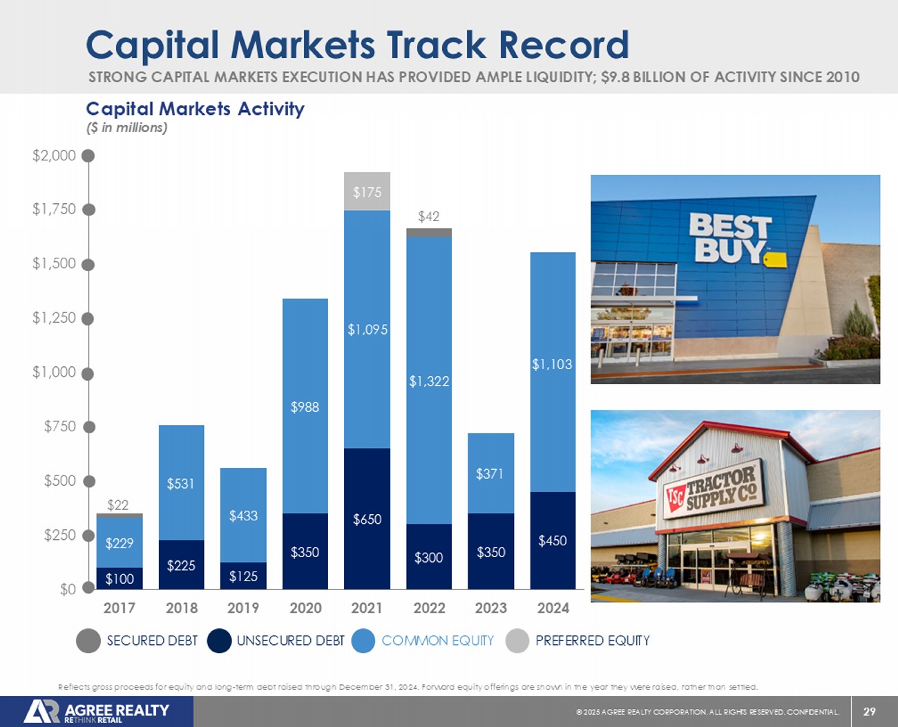 | § | ATMプログラムおよびオーバーナイト・オファリングにより約11億ドルのフォワード・エクイティを調達。 | |
