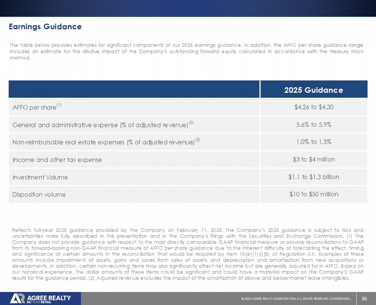 2025年の1株当たりAFFOガイダンスを当初4.26ドルから4.30ドルと提示