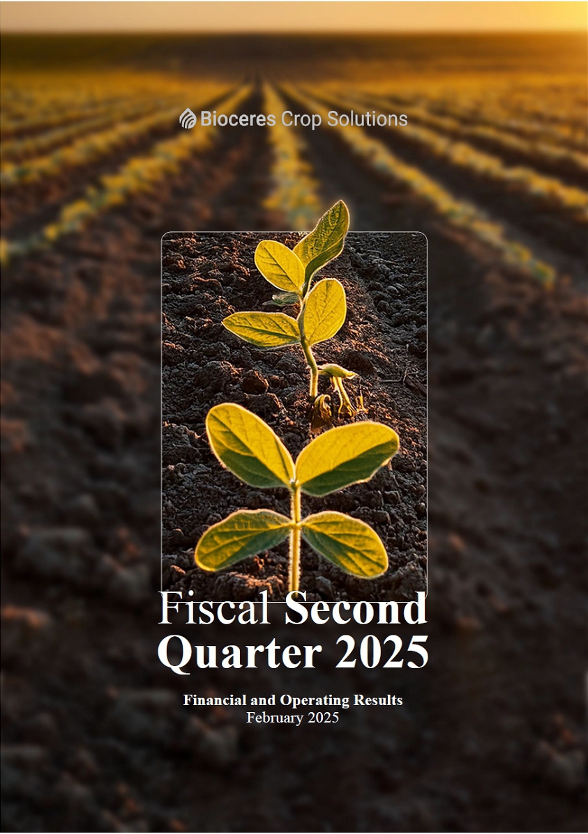 ROSARIO, Argentina – February 11, 2025 – Bioceres Crop Solutions Corp. (Bioceres) (NASDAQ: BIOX), a leader in the development and commercialization of productivity solutions designed to regenerate agricultural ecosystems while making crops more resilient to climate change, announced financial results for the fiscal second quarter ended December 31, 2024. Financial results are expressed in U.S. dollars and are presented in accordance with International Financial Reporting Standards. All comparisons in this announcement are year-over-year (YoY), unless otherwise noted.