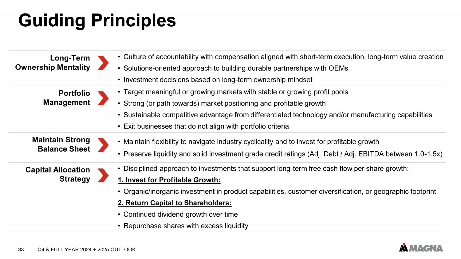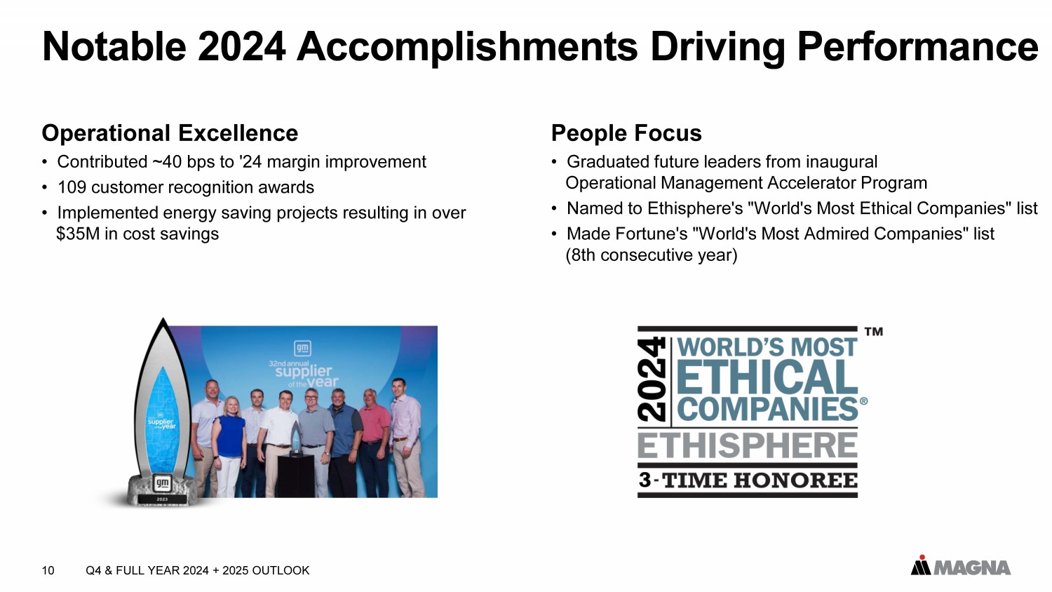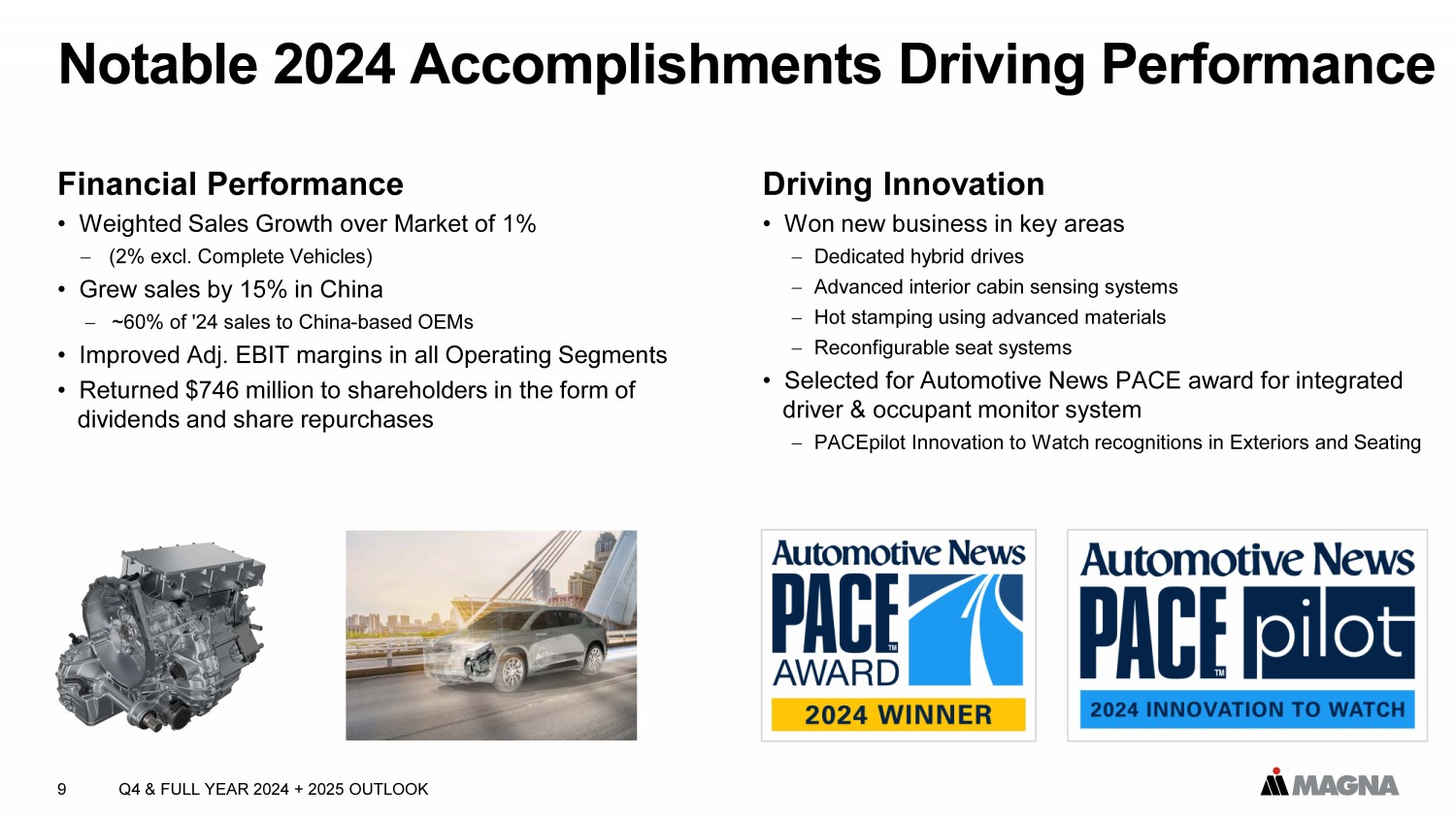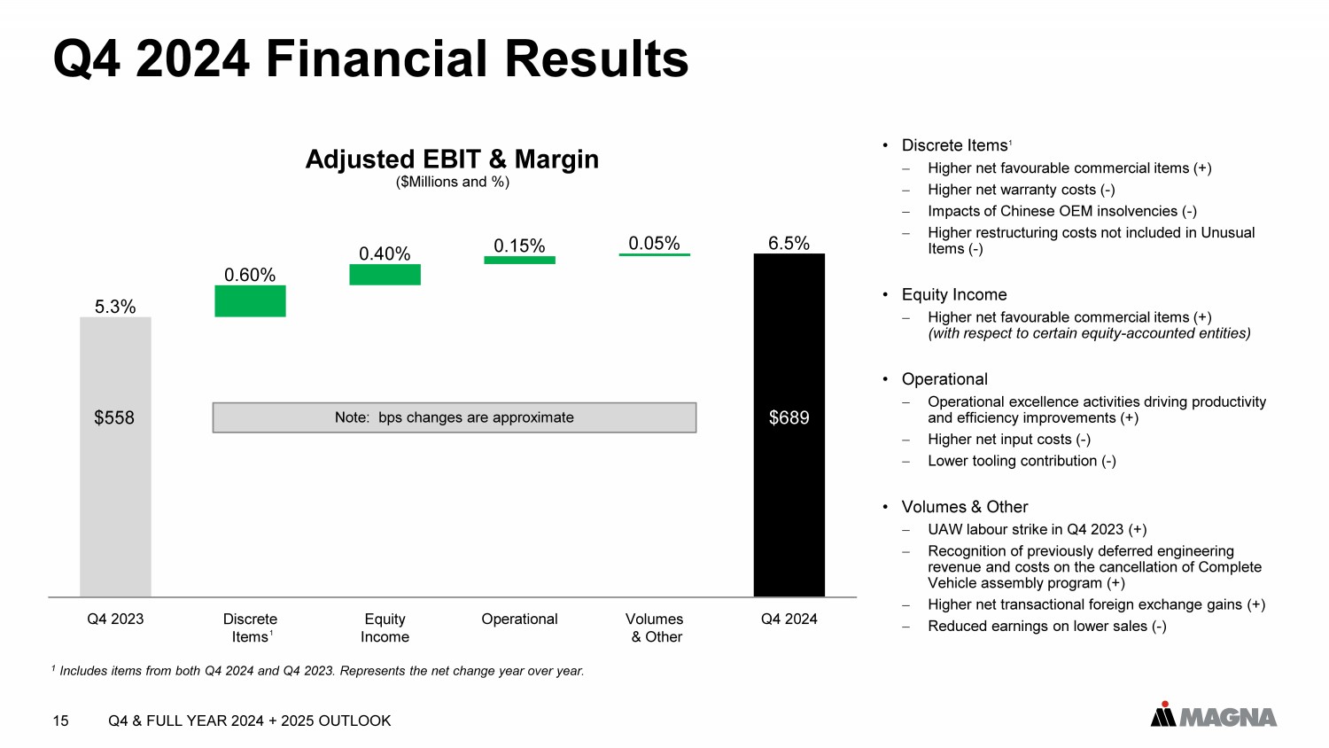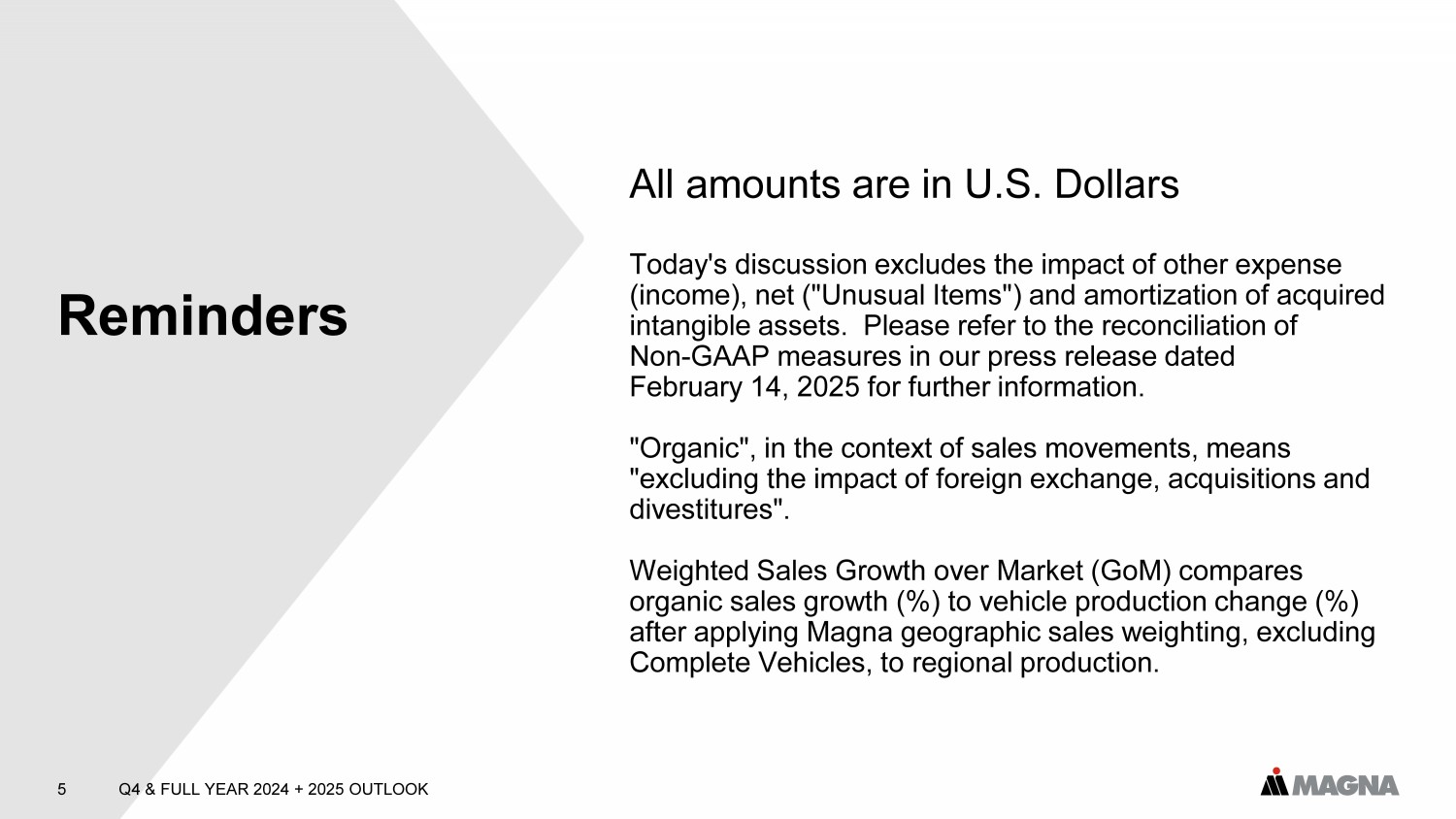 And thank you for standing by. My name is Regina and I will be your conference operator today. At this time, I would like to welcome everyone to the Magna International Fourth Quarter and Year End 2024 Results and 2025 Outlook Webcast and Conference Call. (Operator Instructions)
