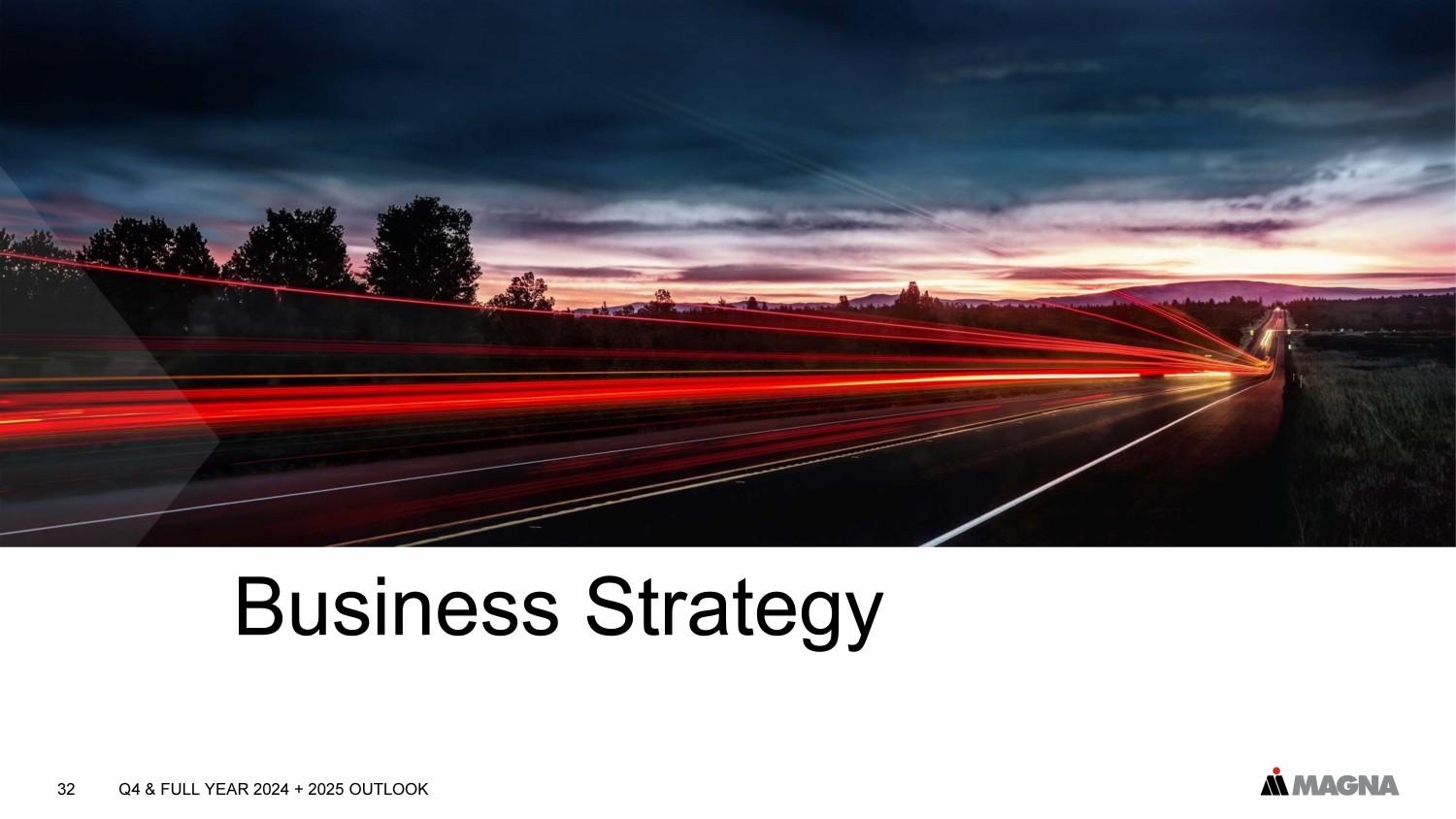 This transcript is derived from a recording of the webcast. While efforts have been made to transcribe accurately, the following transcription may still contain inaccuracies, errors, or omissions. Readers are advised to refer to the webcast itself together with additional information about Magna, including in our Annual Information Form filed with securities commissions in Canada, our annual report on Form 40-F with the United States Securities and Exchange Commission, and subsequent filings, available through the System for Electronic Data Analysis and Retrieval + (SEDAR+) at www.sedarplus.ca, as well as on the United States Securities and Exchange Commission’s Electronic Data Gathering, Analysis, and Retrieval System (EDGAR), which can be accessed at www.sec.gov.