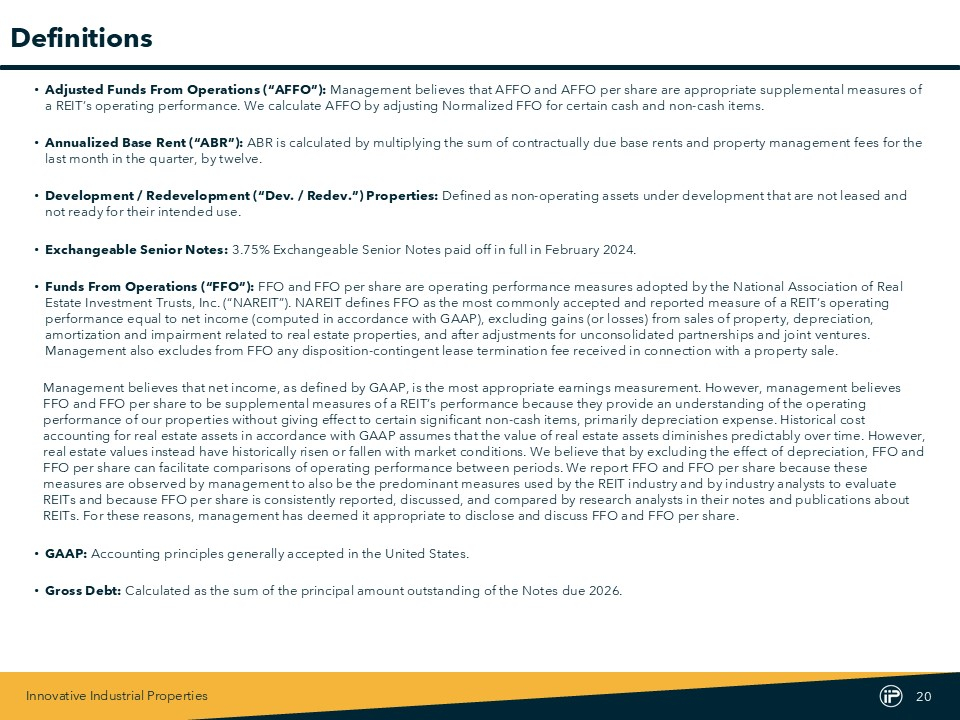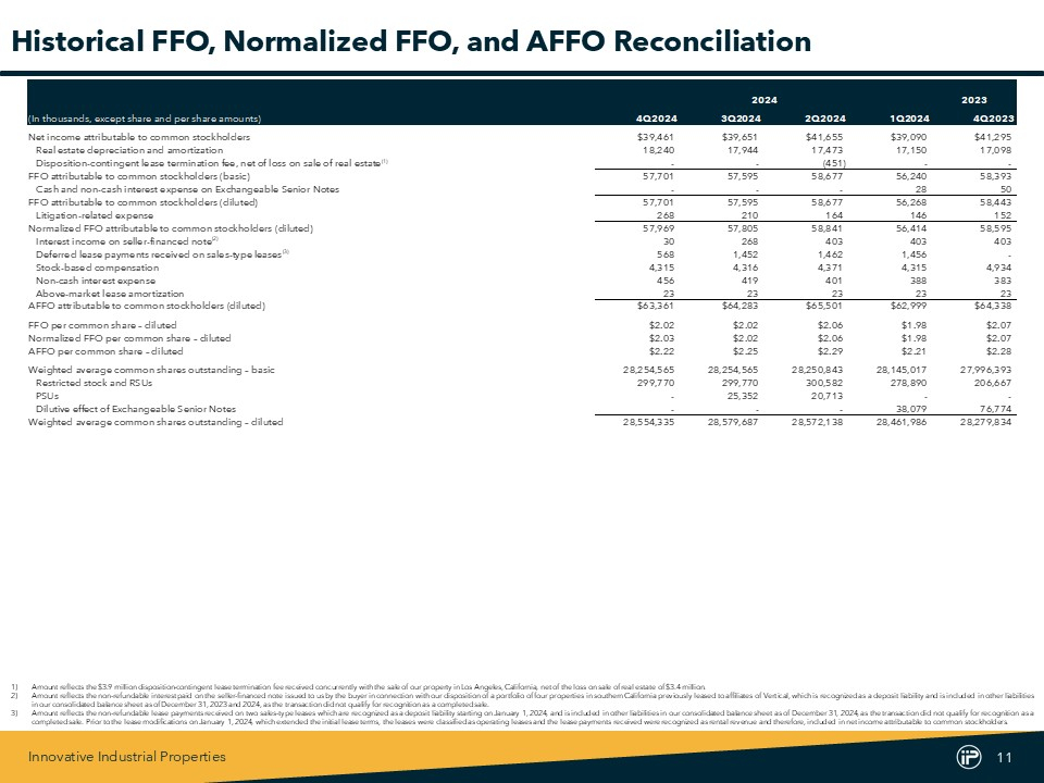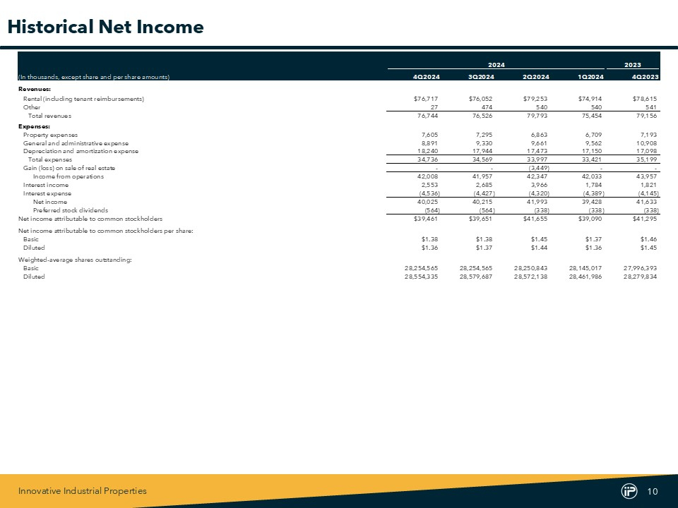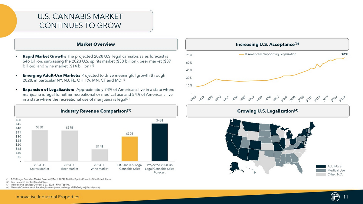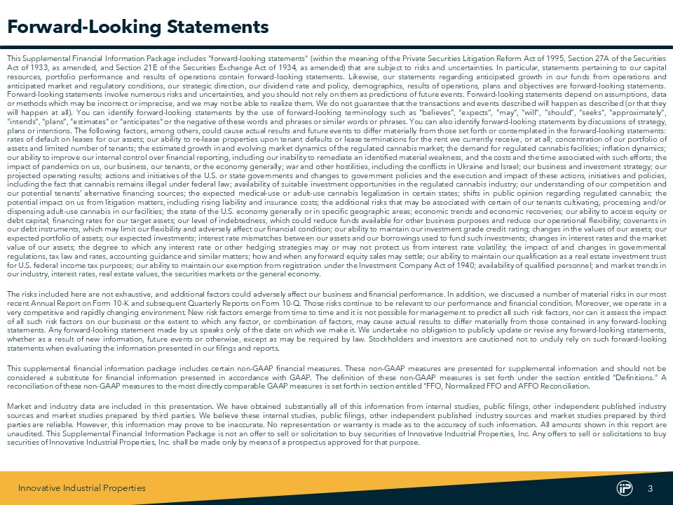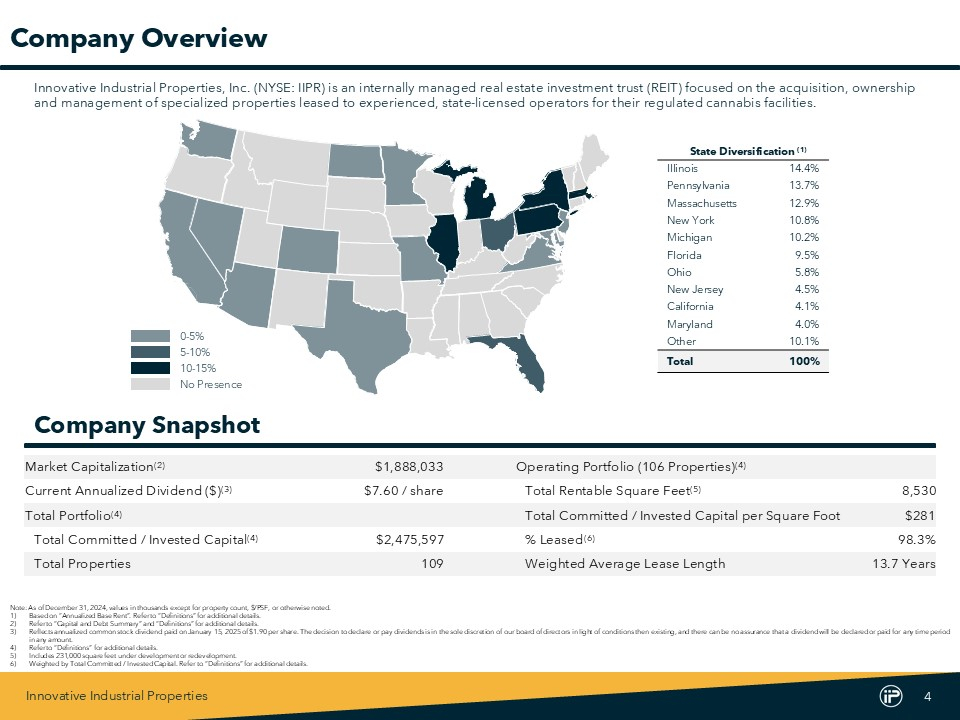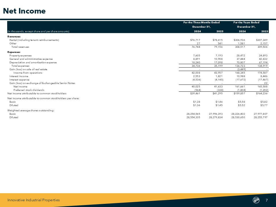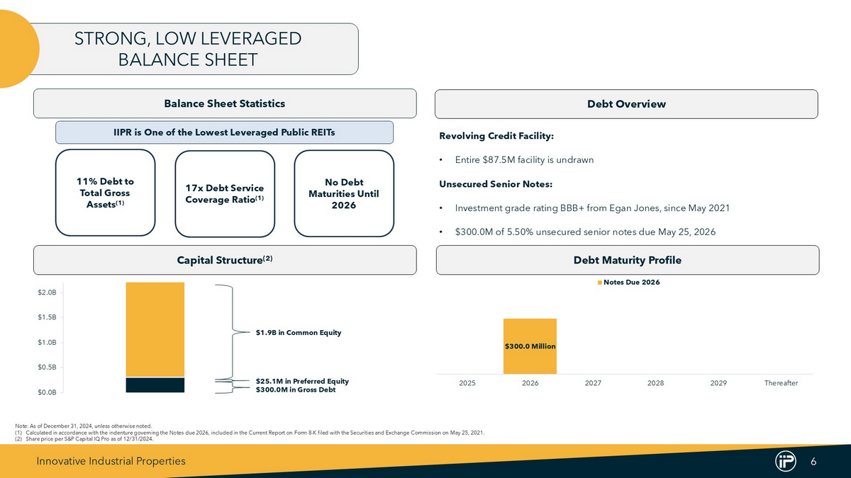 カリフォルニア州サンディエゴ-2025年2月19日-規制対象の米国大麻産業に特化したニューヨーク証券取引所初で唯一の不動産会社であるイノベーティブ・インダストリアル・プロパティーズ・インク(NYSE:IIPR)(以下「IIP」または「当社」)は本日、2024年12月31日を期末とする第4四半期および通期の業績を発表した。