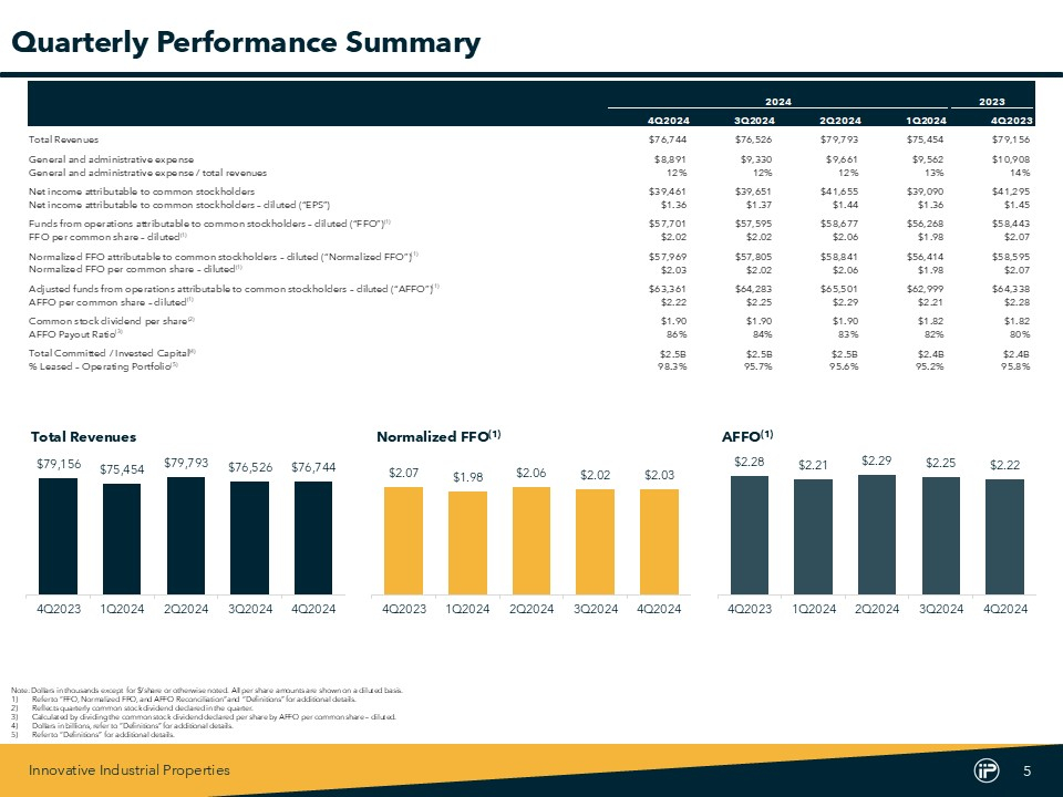 イノベーティブ・インダストリアル・プロパティーズ、2024年第4四半期および通期決算を発表