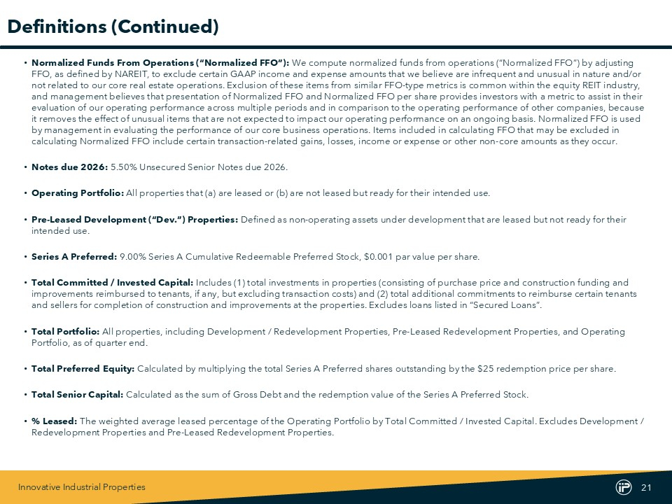 | 99.3 | イノベーティブ・インダストリアル・プロパティーズ2025年2月19日付投資家向けプレゼンテーション。 | |