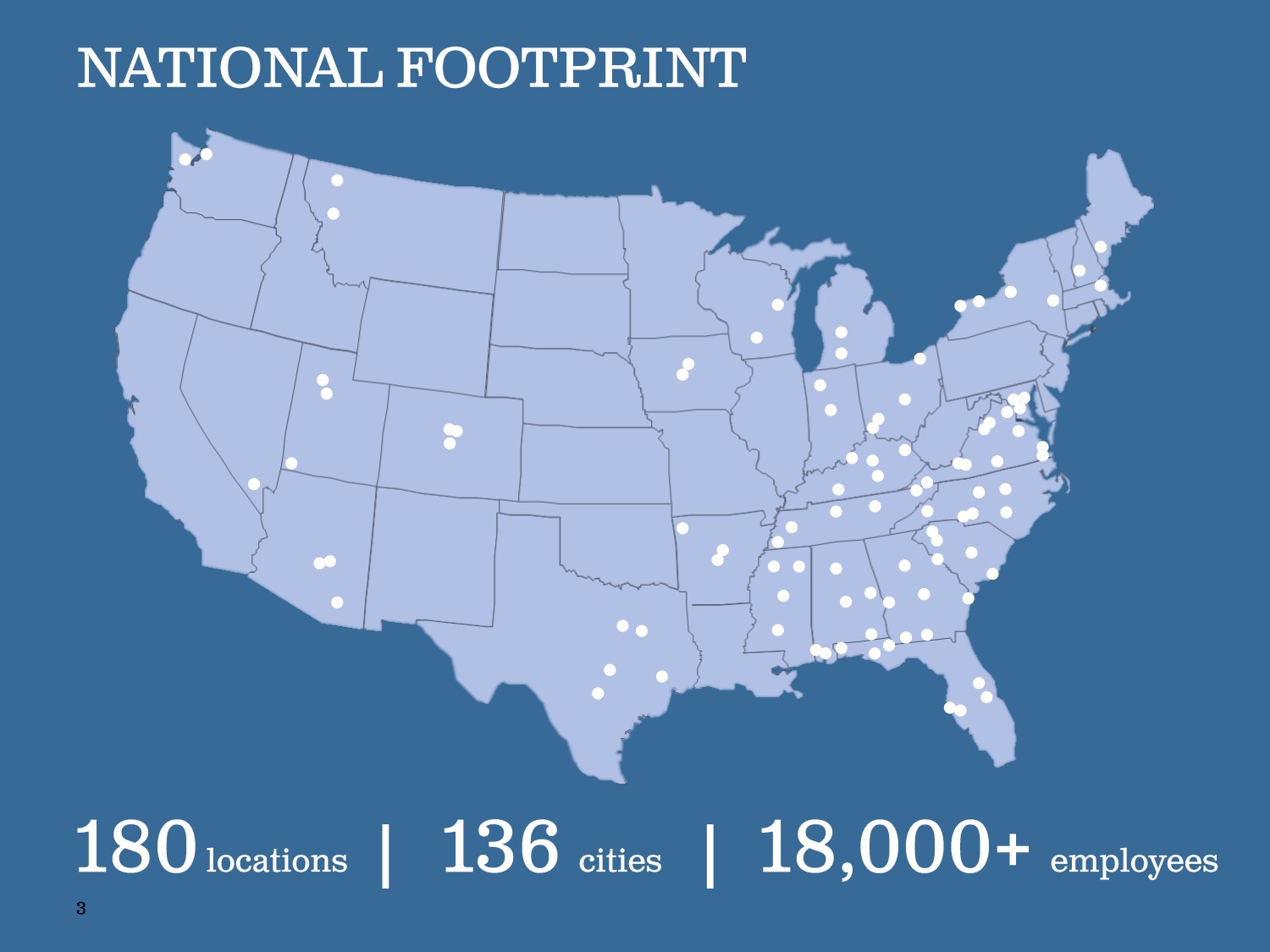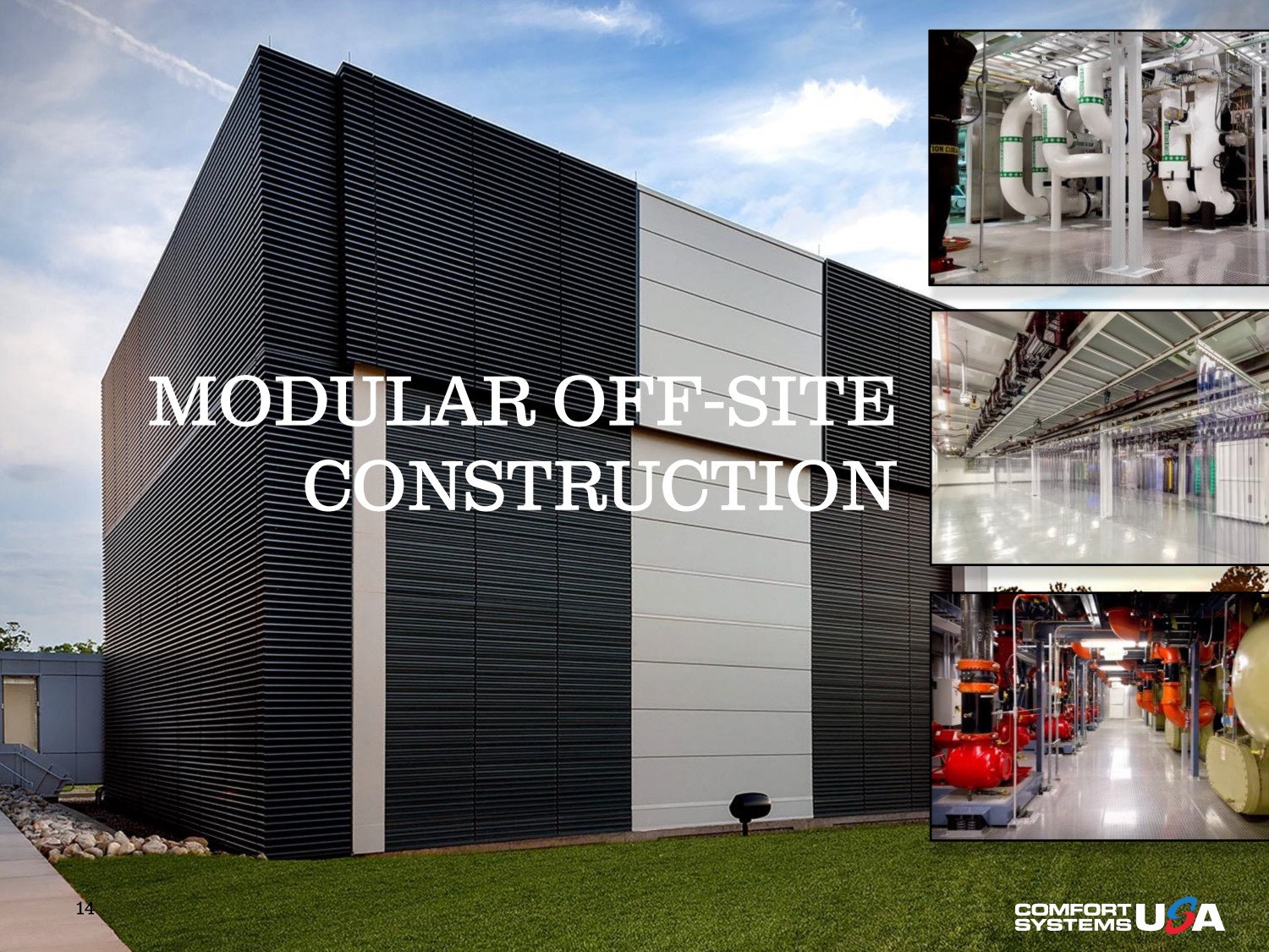 COMFORT SYSTEMS USA 2 • Leading national mechanical, electrical and plumbing (“MEP”) installation and service provider • $7.0+ billion yearly revenue • 61% industrial (including 33% tech) • 18,000+ employees • History of profitable growth and cash flow • Leading mechanical, electrical, and modular construction and service portfolio NATIONAL FOOTPRINT 3 180 locations | 136 cities | 18,000+ employees