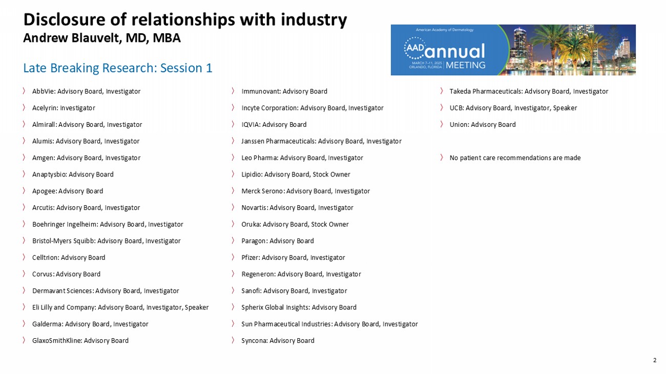On March 8, 2025, the Company also presented the results of these data during a late-breaking session at the 2025 American Academy of Dermatology Association (AAD) Annual Meeting in Orlando, Florida.