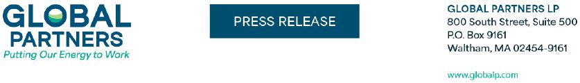 Waltham, Mass., April 14, 2025 – Global Partners LP (NYSE: GLP) (the “Partnership”) today announced that the Board of Directors (the “Board”) of its general partner, Global GP LLC, has declared a quarterly cash distribution of $0.59375 per unit ($2.375 per unit on an annualized basis) on the Partnership’s 9.50% fixed-rate Series B preferred units for the period from February 15, 2025 through May 14, 2025. The distribution will be paid on May 15, 2025 to Series B preferred unitholders of record as of the opening of business on May 1, 2025.