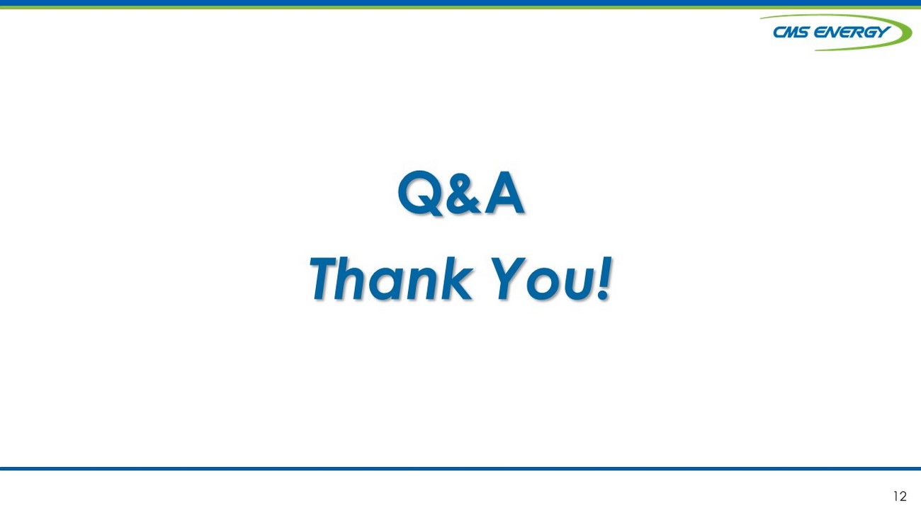 Notes provides downward pressure on Parent equity financing needs 11 Recession Industry - Leading Financial Performance . . . . . . for over two decades, regardless of conditions. 2003 2004 2005 2006 2007 2008 2009 2010 2011 2012 2013 2014 2015 2016 2017 2018 2019 2020 2021 2022 2023 2024 2025+ Recession Adjusted EPS Dividend +6% to +8% Weather Help Hurt Cold winter Mild summer Warm winter Hot summer Mild summer Cold winter Polar vortex Mild summer Warm winter Hot summer Hot summer Summer - less Storms Hot summer Storms Hot summer Warm winter Warm winter Mild winter Governor (D) Governor (R) Governor (D) Commission (D) Commission (D) Commission (R) Commission (I) Commission (D) Dave Joos John Russell Patti Poppe K. Whipple Recession / Pandemic Garrick Rochow Mild w/ storms Hot summer Mild w/ storms 12 12 Q&A Thank You!