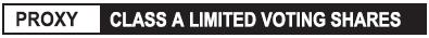In addition, the undersigned appoints such person as proxy to vote and act as aforesaid upon any amendments or variations to the matters identified in the Notice of Meeting and on all other matters that may properly come before the Meeting. Unless otherwise specified above, the shares represented by this proxy will be voted by the persons whose names are printed above for the Special Resolution authorizing an increase in the number of directors set out in the Circular, for the election as directors of all nominees for election by holders of the Class A Limited Voting Shares, for the appointment of Deloitte LLP as the external auditor, for the Say on Pay Resolution and against the Shareholder Proposal set out in the Circular.
