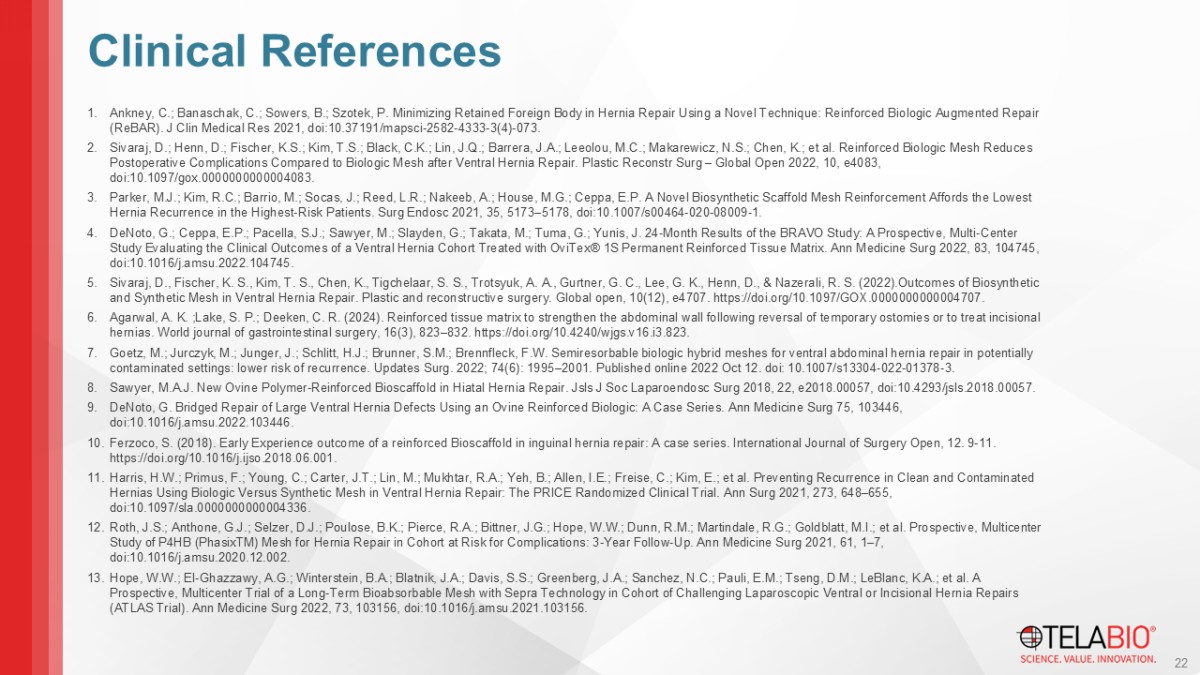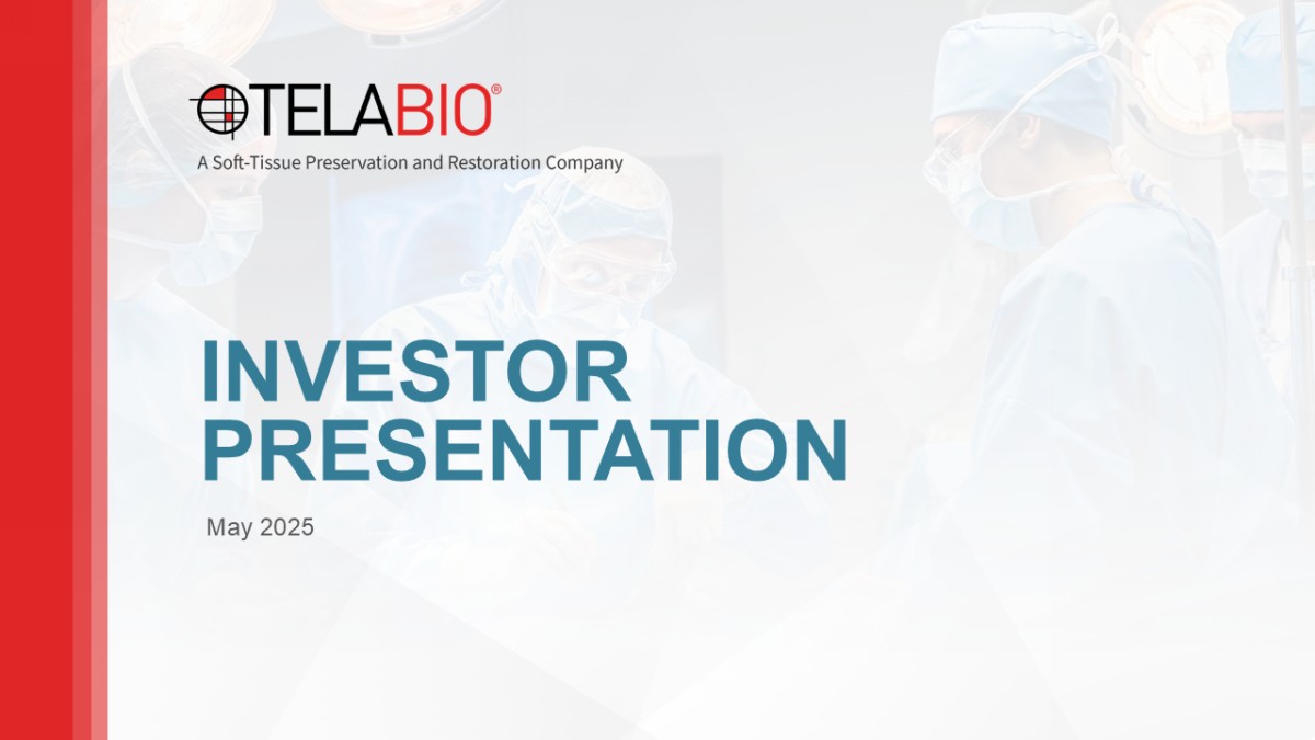 TELAバイオは、2025年5月8日(木)午後4時30分(米国東部時間)より、第1四半期決算に関する電話会議を開催いたします。電話会議をお聞きになりたい方は、オンラインでご登録ください。参加者は前日までに、または電話会議開始の15分前までに登録する必要がある。電話会議の模様は、TELA Bioウェブサイトの投資家向けページのイベント&プレゼンテーションのページでご覧いただけます。