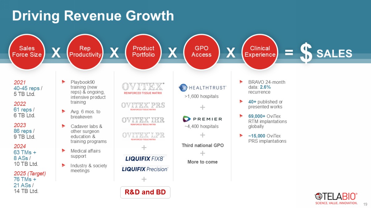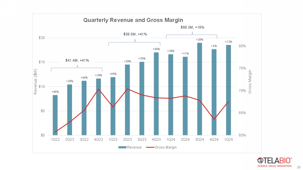 「TELAバイオの社長兼CEOであるアントニー・コブリッシュは、「販売組織の再編と最適化を実施した2025年第1四半期の好調な業績に満足しています。「テリトリーマネージャーとアカウントスペシャリストの相互補完的な連携により、新規顧客獲得と製品ポートフォリオ全体への市場浸透を実現することができました。この勢いを2025年まで持続させ、より高い売上成長と営業レバレッジの拡大を目指し、引き続き収益性の向上を目指していきます。"