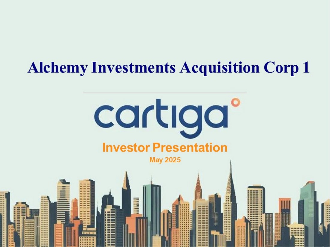 New York, NY, May 12, 2025 – Alchemy Investments Acquisition Corp 1 (“Alchemy”; Nasdaq: ALCY), a publicly traded special purpose acquisition company (“SPAC”), has entered into a non-binding letter of intent with Cartiga, LLC, a Delaware limited liability company (“Cartiga” and together with Alchemy, the “Parties”), in connection with a potential business combination (“Business Combination”).