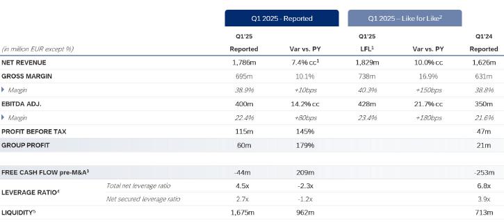 | · | Adjusted EBITDA increases to EUR 400 million (+14.2% cc and +21.7% cc LFL), with a margin of 22.4%. Reported EBITDA grows by 22.6% cc to EUR 381 million. |