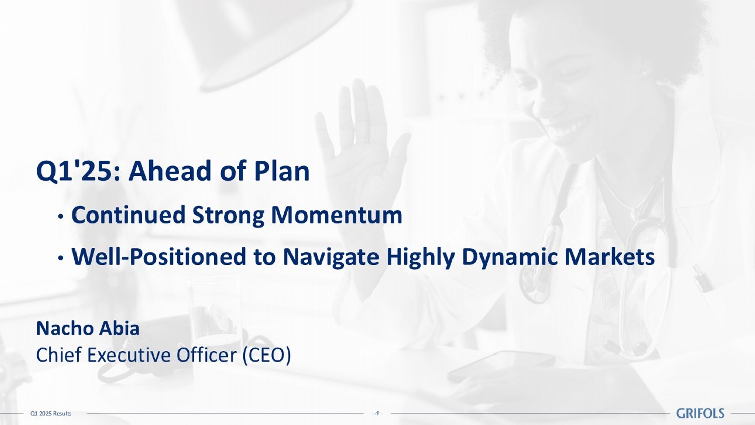 - 3 - Q1 2025 Results Agenda 01 02 03 04 Business Performance Financials Final Remarks Annex Nacho Abia Chief Executive Officer (CEO) Rahul Srinivasan Chief Financial Officer (CFO)