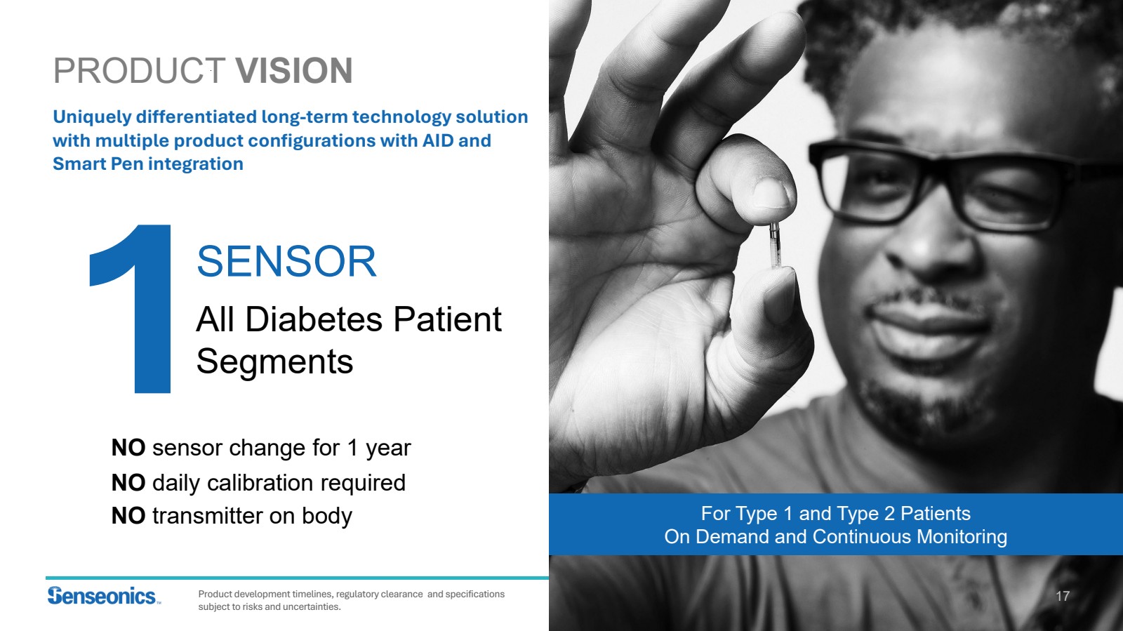 16 New Strategic Partnership with Sequel Diabetes First Automatic Insulin Delivery Pump Partnership Executed • Commercial development agreement announced in April 2025 • Partnership to enable real-time readings from Eversense® to be received by the twiist pump • Readings used in the Loop algorithm to automatically adjust insulin delivery and predict future glucose levels • Expected launch in 2H 2025 Eversense 365 will provide the longevity, continuity, and accuracy essential for AID systems Note: outcome and timing of integration subject to risks and uncertainties |