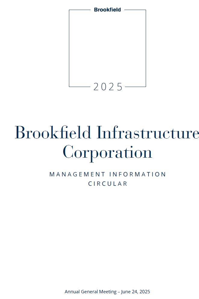 An Annual General Meeting of Shareholders of Brookfield Infrastructure Corporation (the “Corporation” or “BIPC”) will be held on Tuesday, June 24, 2025 at 9:00 a.m. (New York time) in a virtual meeting format to: