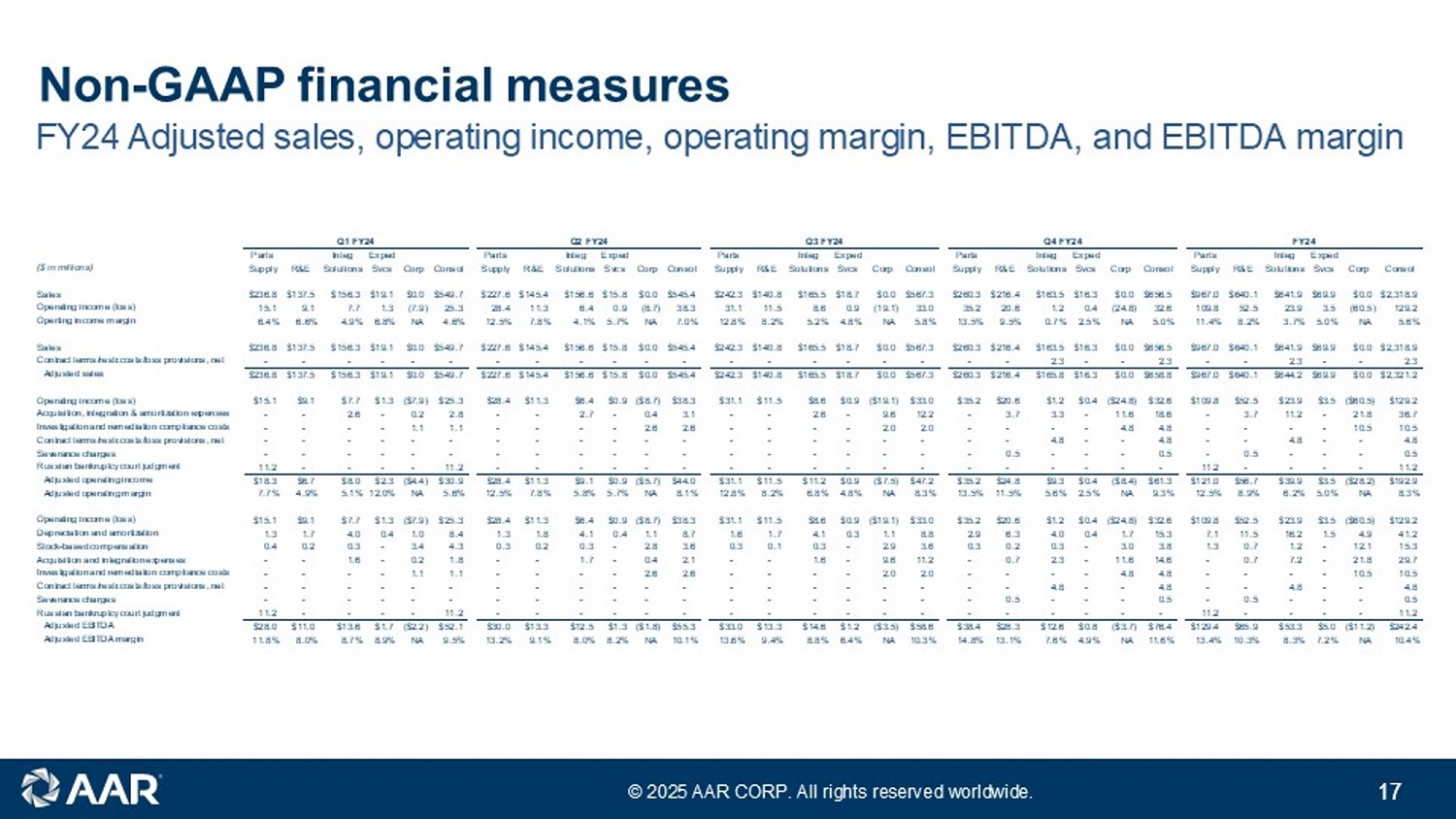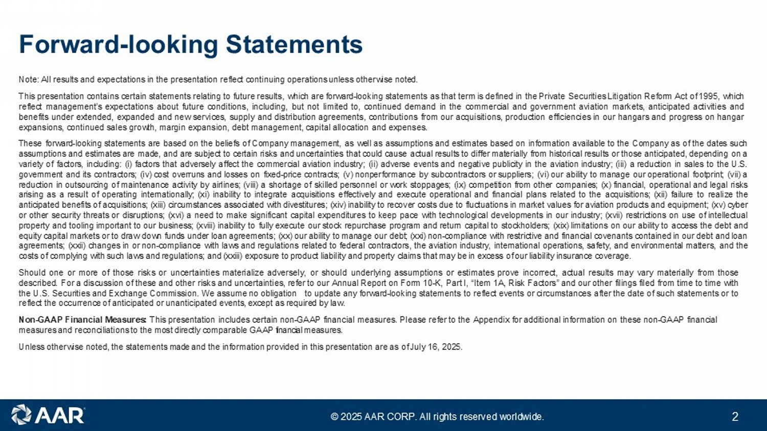 スライドはaarのウェブサイトhttps://www.aarcorp.com/en/investors/events-and-presentations/。