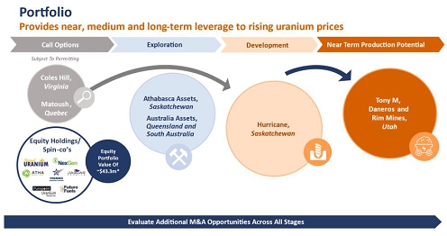 * Equity holdings include investments in NexGen, Premier American Uranium Inc., Atha Energy Corp., Purepoint Uranium Inc., and Future Fuels Inc., based on market close of July 30, 2025, and Jaguar Uranium Inc. and Royal Uranium Inc. at cost translated to Canadian dollars using the Bank of Canada USD:CAD exchange rate on the same date.