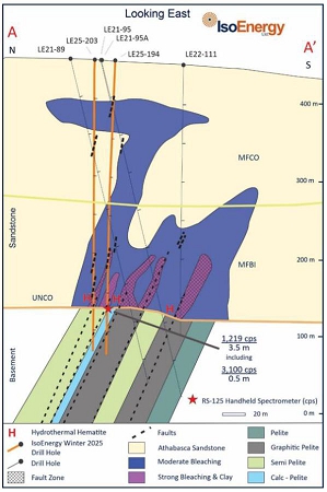 A total of 6,396 metres of drilling in 17 diamond drill holes were successfully completed early in 2025 along the Larocque East Project focused on the Larocque regional geological-geophysical corridor (“Larocque Trend”), which hosts the Hurricane Deposit (Figure 4). Drilling intersected strongly elevated radioactivity along the eastern extensions of the Hurricane Deposit’s Main and South trends (Figure 2), as well as at Area D, 2.8 kilometres east (Figure 4), highlighting the potential for additional uranium zones near the deposit and along the Larocque Trend. The summer 2025 drill program at Larocque East has commenced and is expected to encompass a total of 20 diamond drill holes for 7,600 metres of drilling following up on encouraging results from the winter 2025 program. This will be followed by 3,400 metres of drilling in four holes on the Hawk project. The inaugural drill program at the Dorado project, operated through the Purepoint Joint Venture, focused on the Q48 target and intersected uranium mineralization in four holes and led to the recent discovery of the Nova zone.