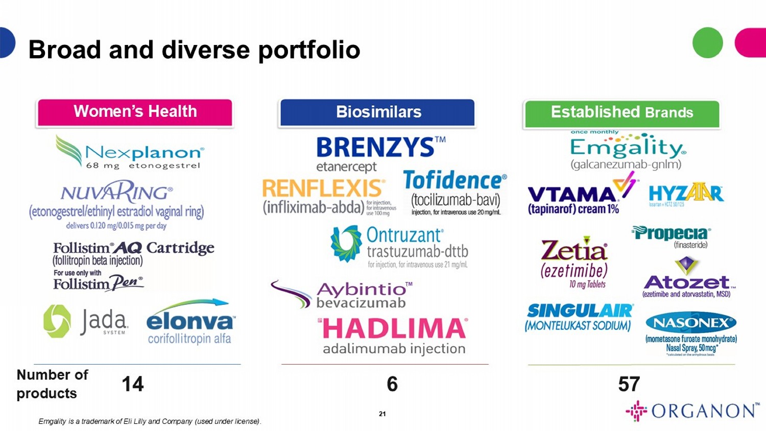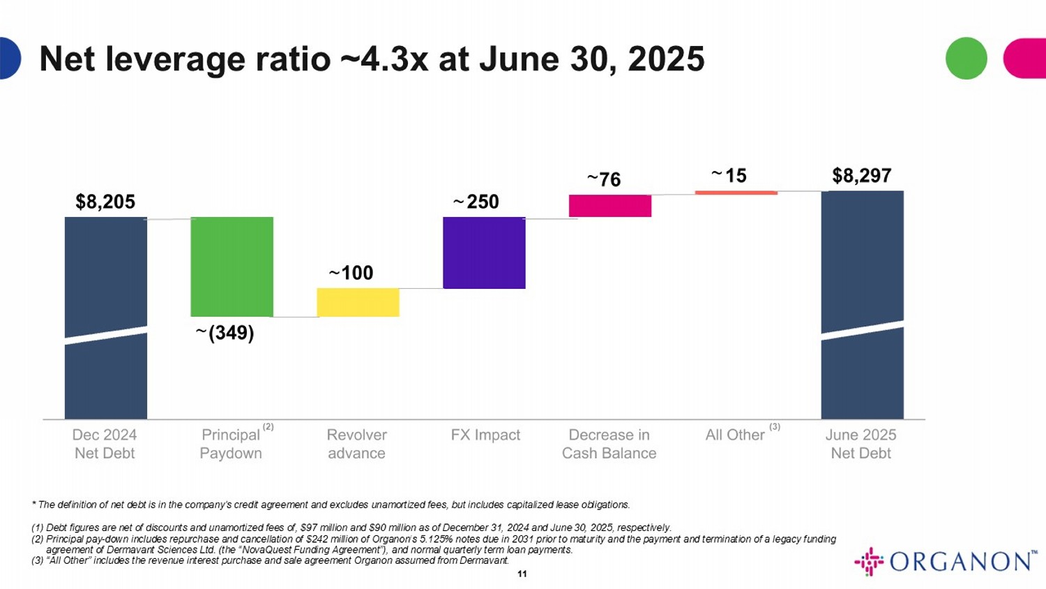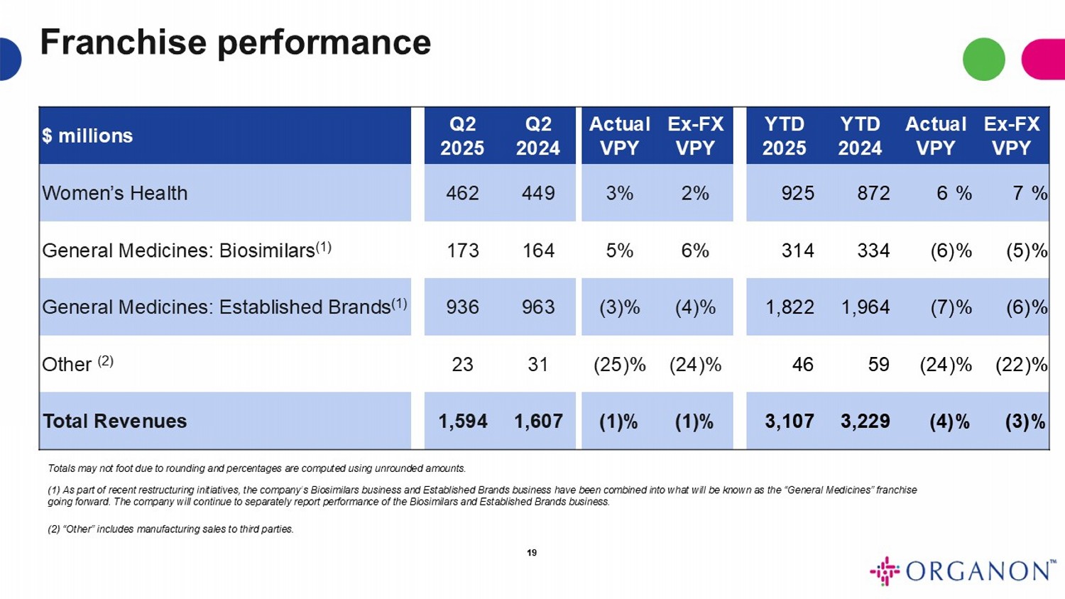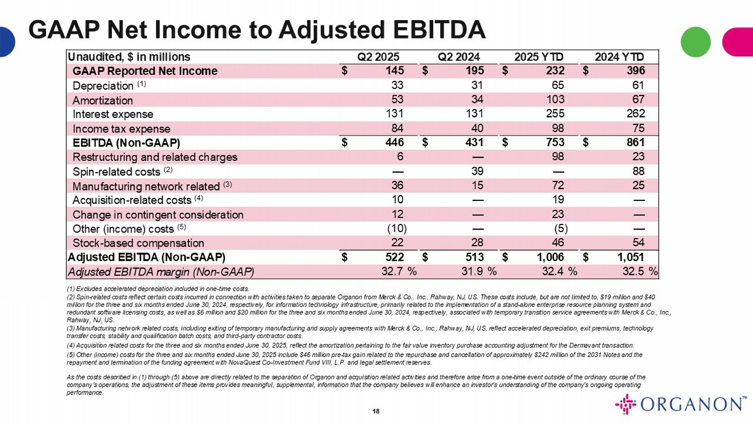 Except for historical information, this press release includes “forward-looking statements” within the meaning of the safe harbor provisions of the U.S. Private Securities Litigation Reform Act of 1995, including, but not limited to, statements about management’s expectations about Organon’s full-year 2025 guidance estimates and predictions regarding other financial information and metrics, as well as expectations regarding Organon’s franchise and product performance and strategy expectations for future periods. Forward-looking statements may be identified by words such as “goals,” “guidance,” potential,” “should,” “will,” “continue,” “expects,” “believes,” “future,” “estimates,” “opportunity,” or words of similar meaning. These statements are based upon the current beliefs and expectations of the company’s management and are subject to significant risks and uncertainties. If underlying assumptions prove inaccurate, or risks or uncertainties materialize, actual results may differ materially from those set forth in the forward-looking statements. Risks and uncertainties include, but are not limited to, expanded brand and class competition in the markets in which Organon operates; trade protection measures and import or export licensing requirements, including the direct and indirect impacts of tariffs (including any potential pharmaceutical sector tariffs), trade sanctions or similar restrictions by the United States or other governments; changes in U.S. and foreign federal, state and local governmental funding allocations including the timing and amounts allocated to Organon’s customers and business partners; economic factors over which Organon has no control, including changes in inflation, interest rates, recessionary pressures, and foreign currency exchange rates; market volatility, downgrades to the U.S. government’s sovereign credit rating or its perceived creditworthiness, changing political or geopolitical conditions, market contraction, boycotts, and sanctions, as well as Organon’s ability to successfully manage uncertainties related to the foregoing; difficulties with performance of third parties Organon relies on for its business growth; the failure of any supplier to provide substances, materials, or services as agreed; the increased cost of supply, manufacturing, packaging, and operations; difficulties developing and sustaining relationships with commercial counterparties; competition from generic products as Organon’s products lose patent protection; any failure by Organon to retain market exclusivity for Nexplanon® (etonogestrel implant) or to obtain an additional period of exclusivity in the United States for Nexplanon subsequent to the expiration of the rod patents in 2027; the continued impact of the September 2024 LOE for Atozet™ (ezetimibe and atorvastatin); the success of our efforts to adapt our business and sales strategies to address the changing market and regulatory landscape in order to achieve our business objectives and remain competitive, which may include implementing or continuing to assess product discount programs and wholesaler inventory levels under the relevant agreements for certain key products such as Nexplanon; restructurings or other disruptions at the U.S. Food and Drug Administration (“FDA”), the U.S. Securities and Exchange Commission (“SEC”) and other U.S. and comparable government agencies; difficulties and uncertainties inherent in the implementation of Organon’s acquisition strategy or failure to recognize the benefits of such acquisitions; pricing pressures globally, including rules and practices of managed care groups, judicial decisions and governmental laws and regulations related to Medicare, Medicaid and health care reform, pharmaceutical reimbursement and pricing in general; the impact of higher selling and promotional costs; changes in government laws and regulations in the United States and other jurisdictions, including laws and regulations governing the research, development, approval, clearance, manufacturing, supply, distribution, and/or marketing of our products and related intellectual property, environmental regulations, and the enforcement thereof affecting Organon’s business; efficacy, safety or other quality concerns with respect to our marketed products, whether or not scientifically justified, leading to product recalls, withdrawals or declining sales; delays or failures to demonstrate adequate efficacy and safety of Organon’s product candidates in pre-clinical and clinical trials, which may prevent or delay the development, approval, clearance, or commercialization of Organon’s product candidates; future actions of third parties, including significant changes in customer relationships or changes in the behavior and spending patterns of purchasers of health care products and services, including delaying medical procedures, rationing prescription medications, reducing the frequency of physician visits and forgoing health care insurance coverage; legal factors, including product liability claims, antitrust litigation and governmental investigations, including tax disputes, environmental claims and patent disputes with branded and generic competitors, any of which could preclude commercialization of products or negatively affect the profitability of existing products; lost market opportunity resulting from delays and uncertainties in clinical trials and the approval or clearance process of the FDA and other regulatory authorities; the failure by Organon or its third party collaborators and/or their suppliers to fulfill our or their regulatory or quality obligations, which could lead to a delay in regulatory approval or commercial marketing of Organon’s products; cyberattacks on, or other failures, accidents, or security breaches of, Organon’s or third-party providers’ information technology systems, which could disrupt Organon’s operat