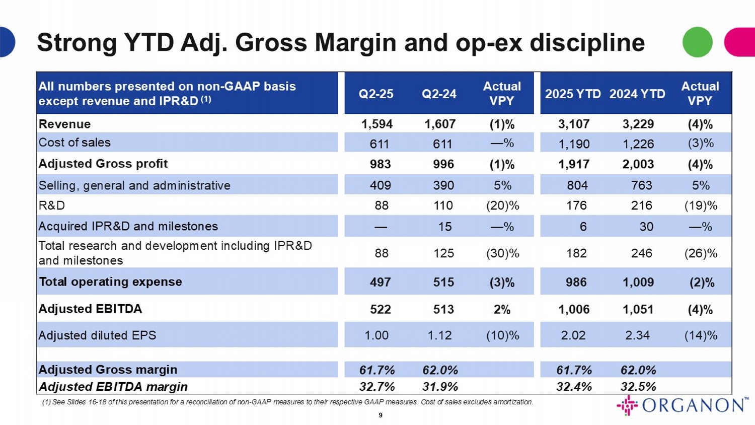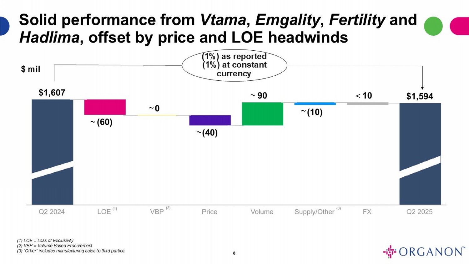 ニュージャージー州ジャージーシティ、2025年8月5日 - オルガノン(NYSE: OGN)は本日、2025年6月30日に終了した第2四半期の業績を発表した。