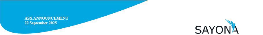 | · | Capitalised terms in this announcement that are not otherwise defined have the meaning given to them in the Notice of Meeting and Explanatory Memorandum released by Sayona on the ASX on June 20, 2025. |
