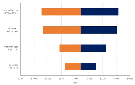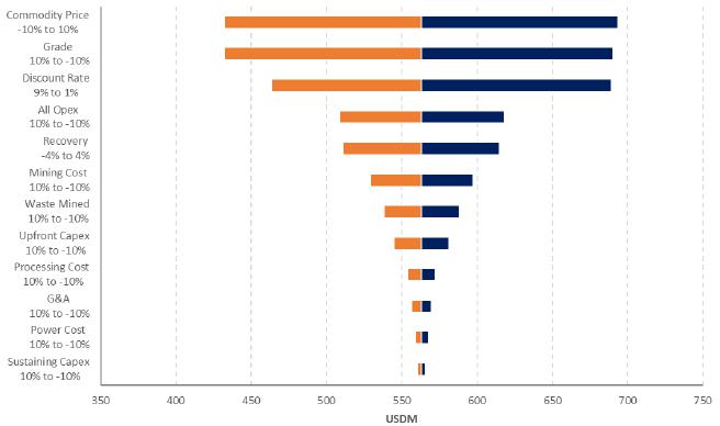 Estimated NPV sensitivities for key operating and economic metrics are presented in Figure 3.