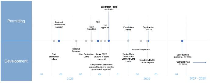 The DFS is expected to be completed towards the end of the second quarter of 2026, leading to an anticipated construction decision shortly thereafter. A positive construction decision would position Diamba Sud to begin full construction in the fourth quarter of 2026, following the wet season, with first gold pour targeted for the second quarter of 2028.