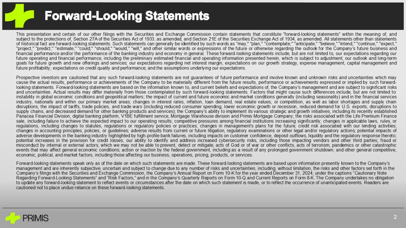 99.2 プリミス・ファイナンシャル・コーポレーション2025年第3四半期 投資家向けプレゼンテーション