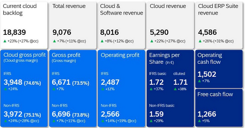 | Current cloud backlog of €18.8 billion, up 23% and up 27% at constant currencies |