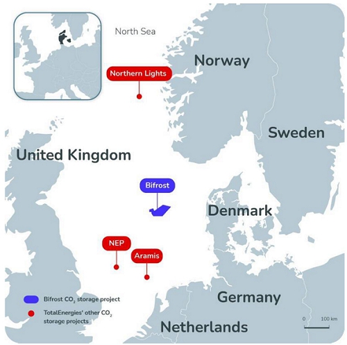 The Bifrost Project, which comprises two CO2 offshore storage licenses located approximately 200 kilometers west of the Danish coast, is part of TotalEnergies’ North Sea CCS portfolio.
