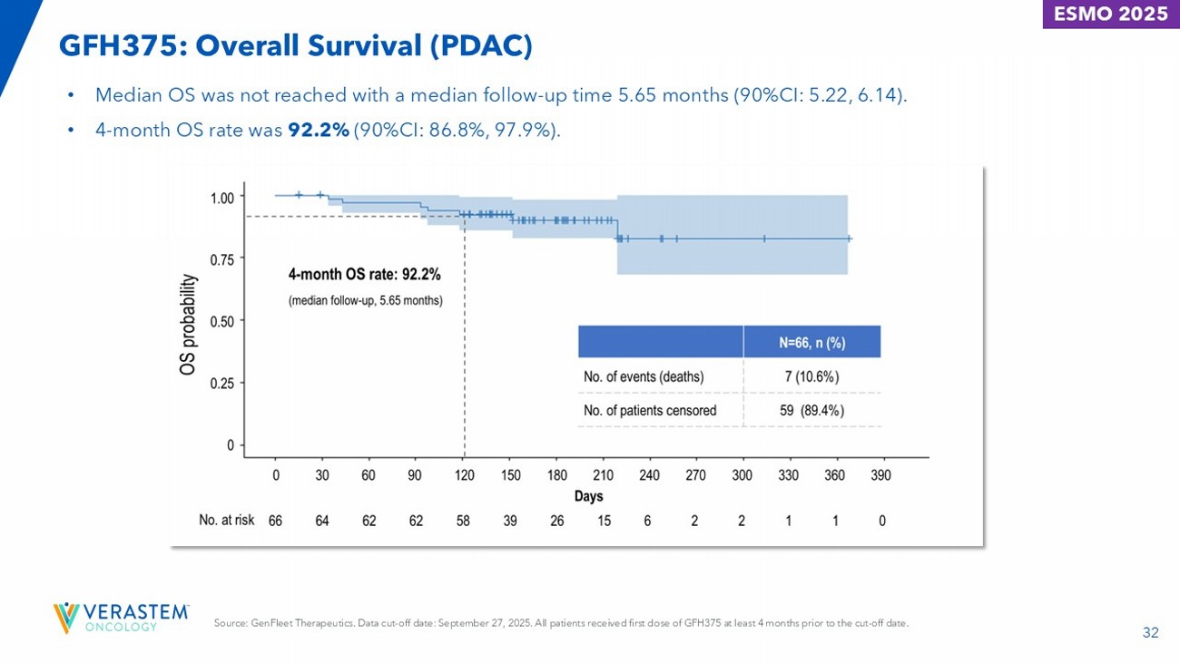 | · | GenFleet社は2025年10月27日、GFH375をKRAS G12D変異の進行PDACとNSCLCの両方で評価し、最近の医学会議で発表されたデータから、以下の追加分析を共有した。: |