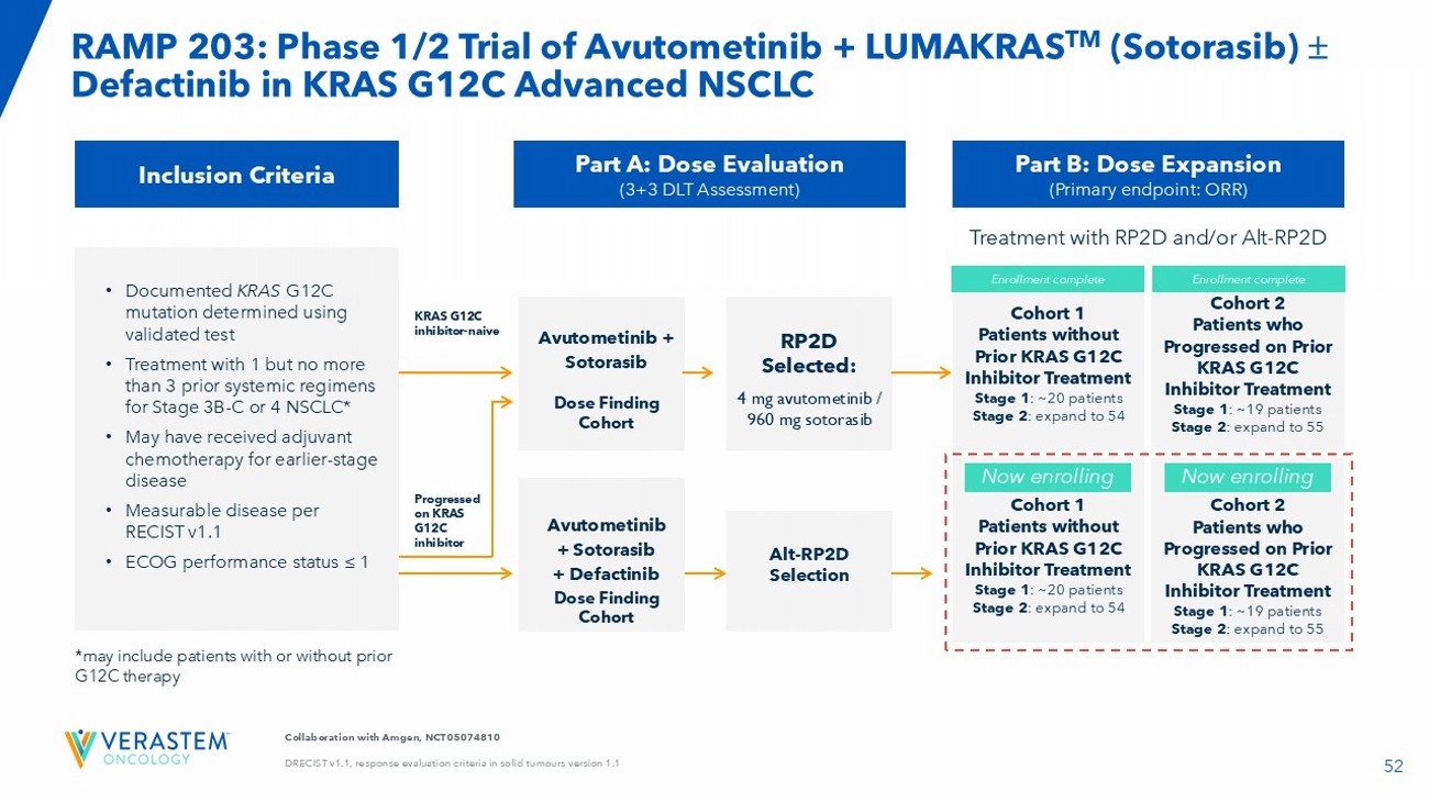 | · | RAMP 301については、独立データモニタリング委員会(IDMC)による事前に計画された中間解析(IA)が実施され、IDMCは1回限りの緩やかな登録数の増加を推奨した。現在までに達成された登録総数に基づき、KRAS遺伝子変異の有無にかかわらず29名の患者が追加される予定である。当社はIAの結果について引き続き盲検化されている。 |