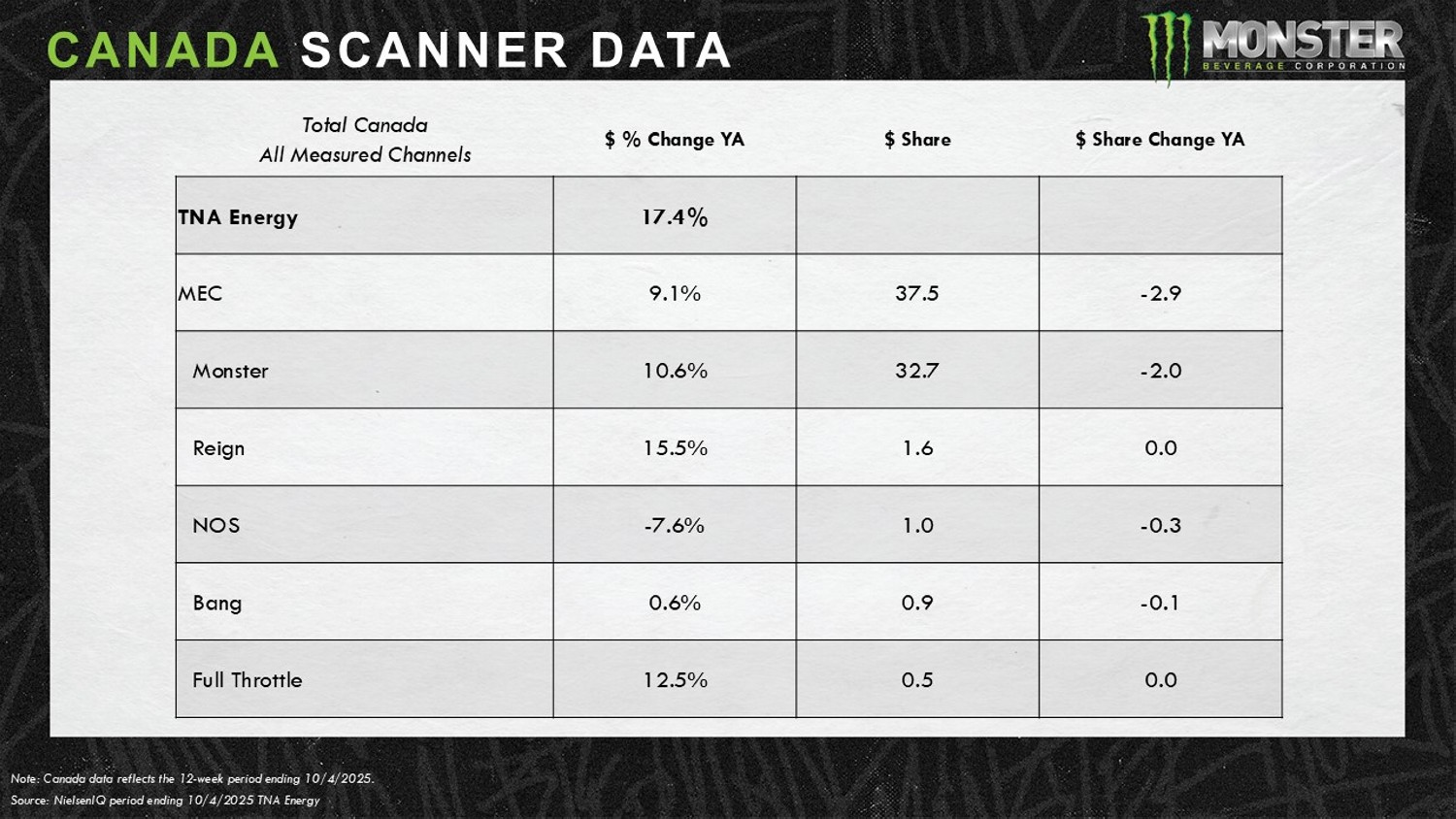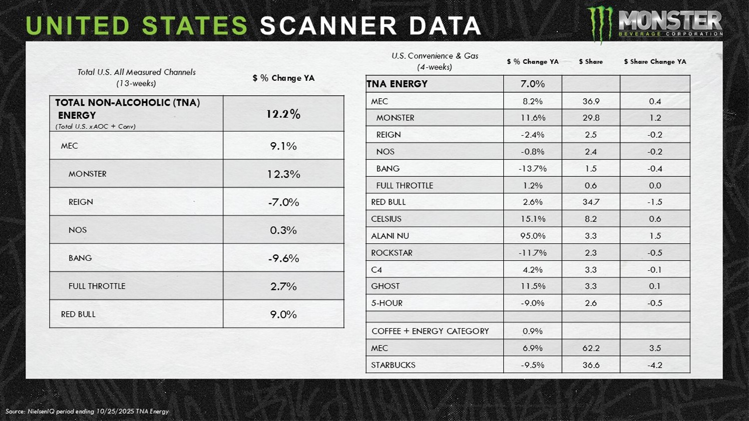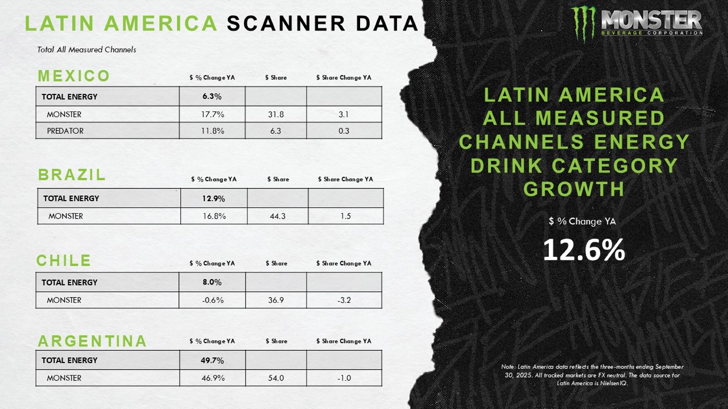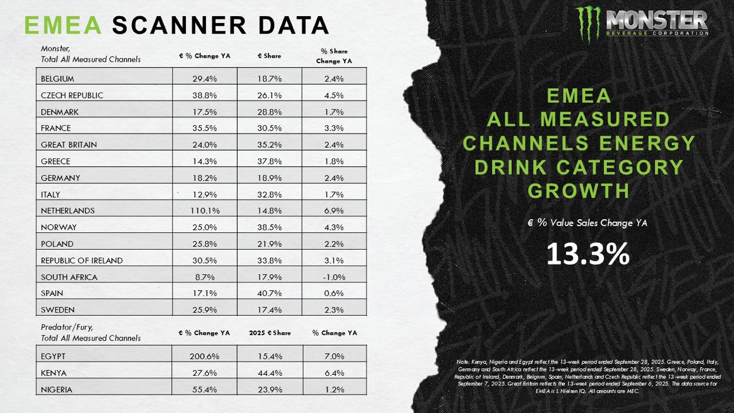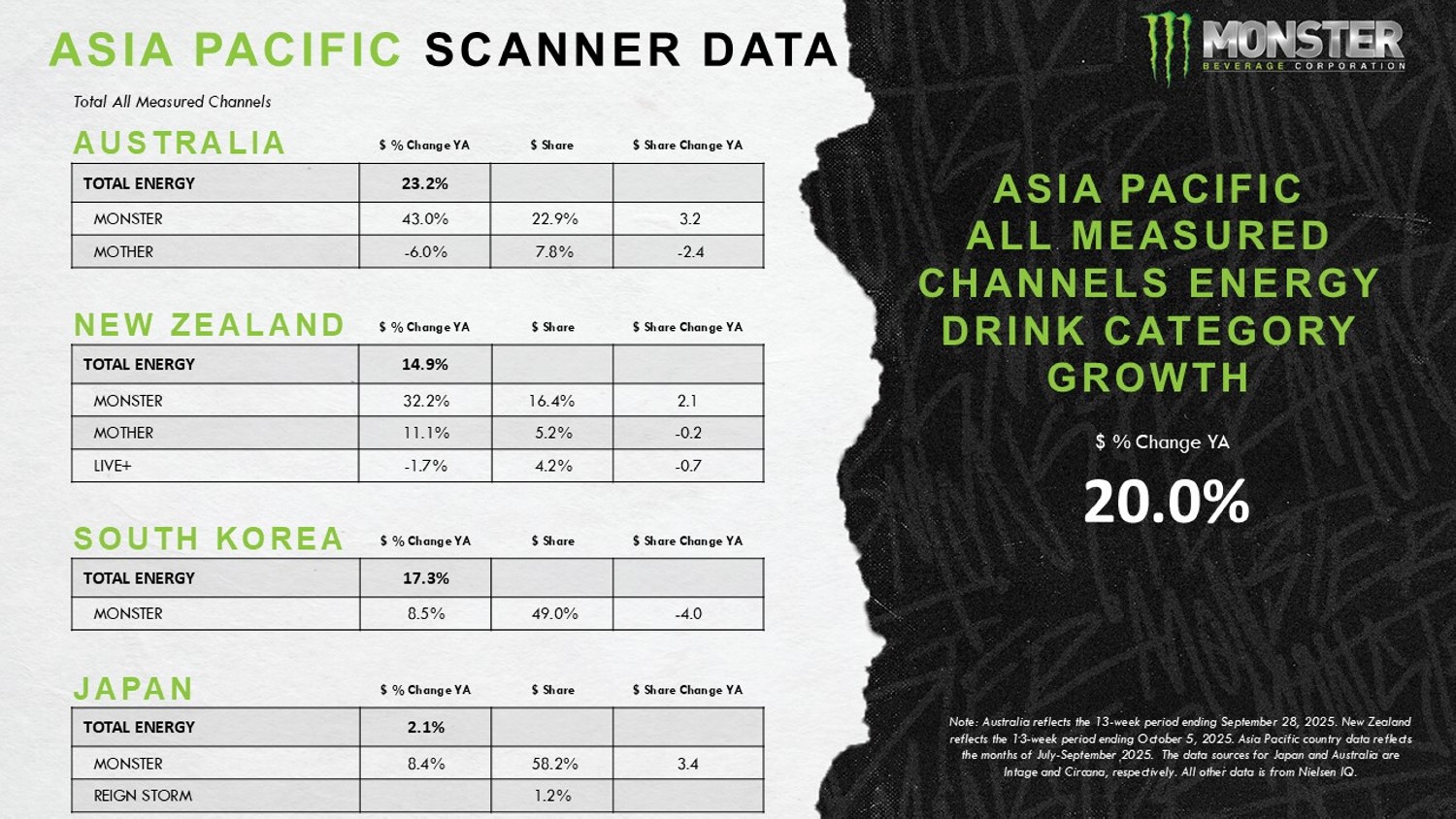 カリフォルニア州コロナ-2025年11月6日-モンスター・ビバレッジ・コーポレーション(NASDAQ: MNST)は本日、2025年9月30日に終了した3カ月間および9カ月間の決算を発表した。