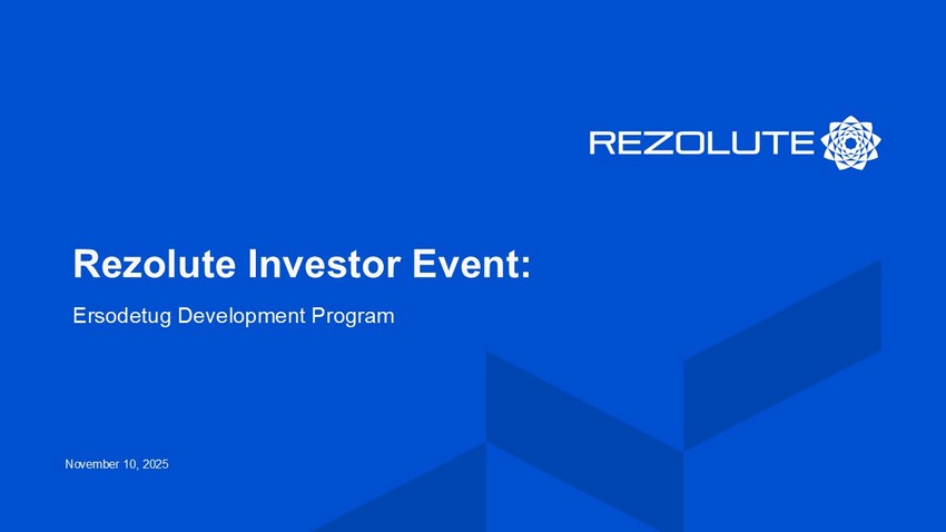 Rezolute Investor Event: Ersodetug Development Program November 10, 2025