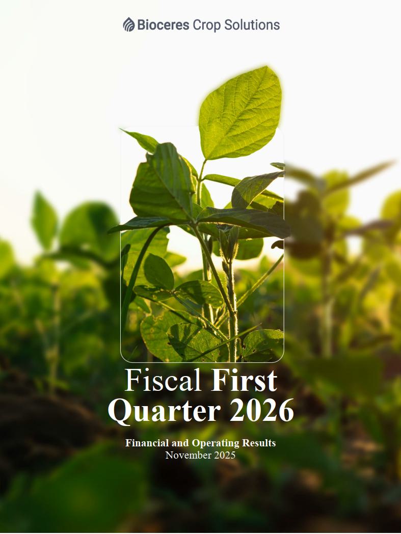 ROSARIO, Argentina – November 12, 2025 – Bioceres Crop Solutions Corp. (Bioceres) (NASDAQ: BIOX), a leader in the development and commercialization of productivity solutions designed to regenerate agricultural ecosystems while making crops more resilient to climate change, announced financial results for the fiscal first quarter ended September 30, 2025. Financial results are expressed in U.S. dollars and are presented in accordance with International Financial Reporting Standards. All comparisons in this announcement are year-over-year (YoY), unless otherwise noted.