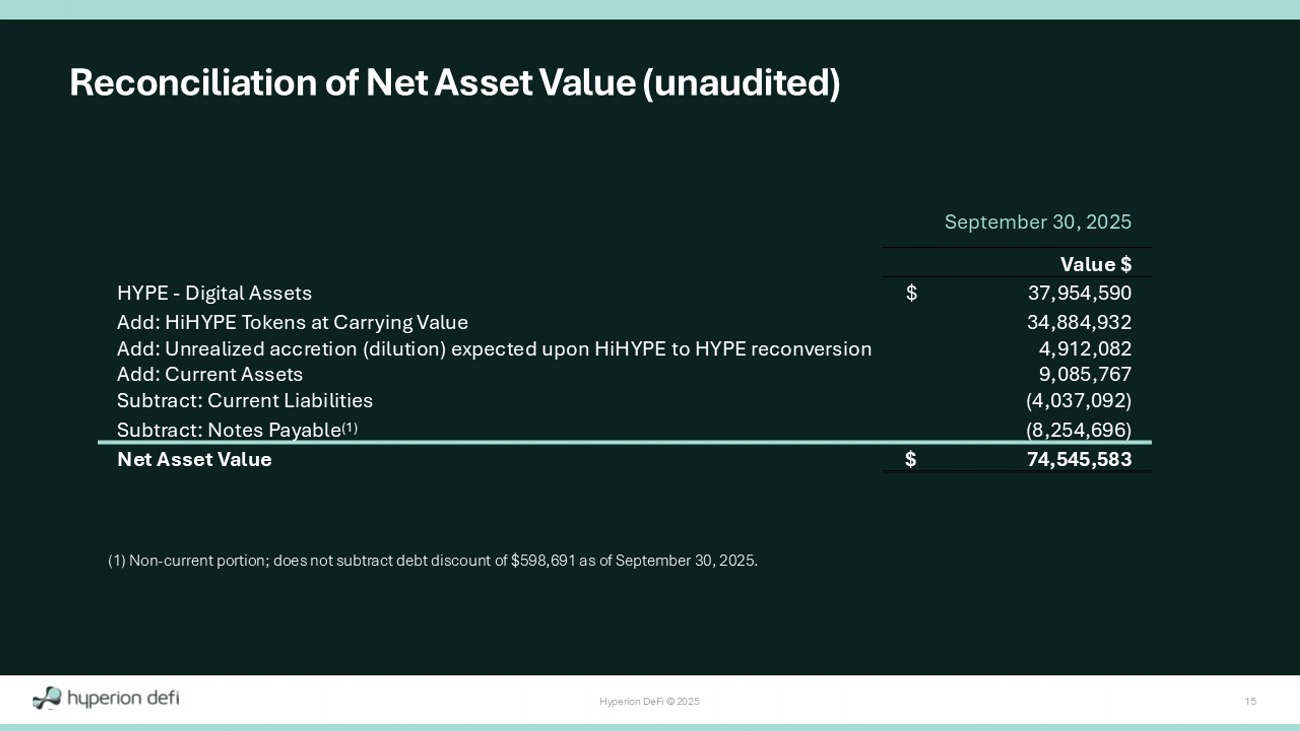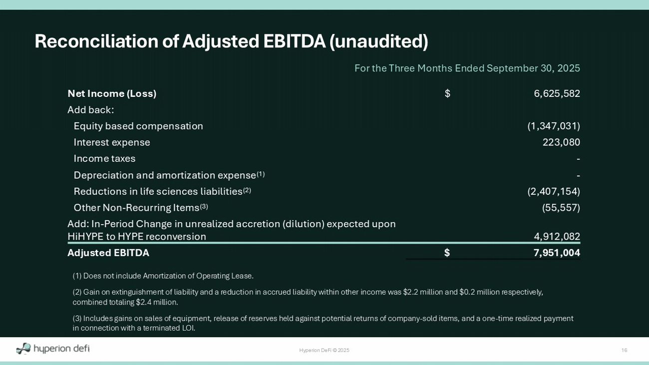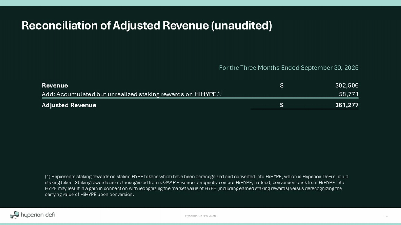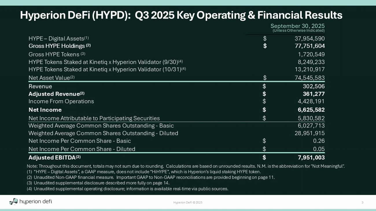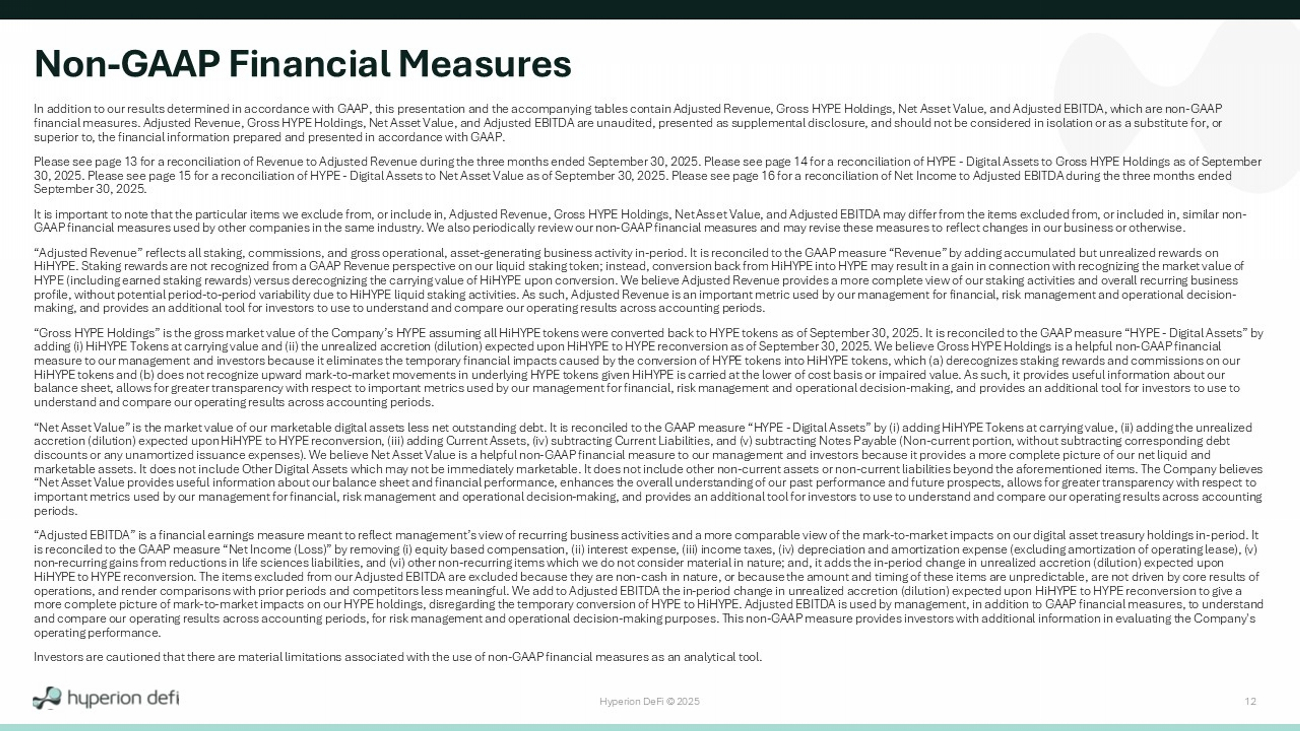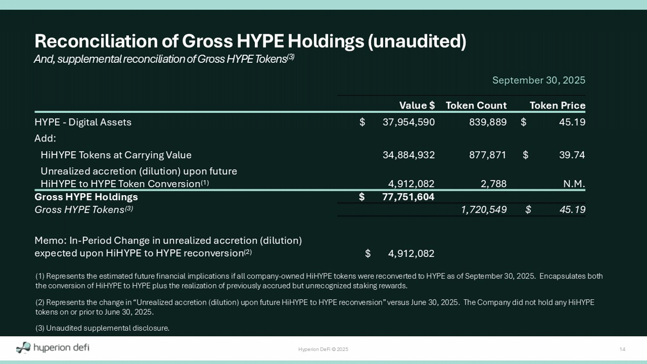(2) GAAP指標である「HYPE - デジタル資産」には、Hyperionの流動的なステーキングHYPEトークンであるHiHYPEは含まれていません。