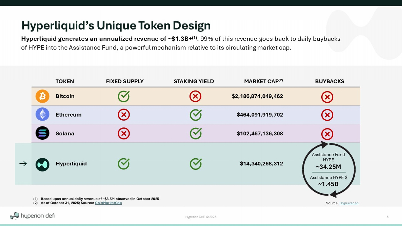 | o | 当社は2025年9月にクレドとの最初のHAUS取引を発表し、これによりクレドはHyperliquid分散型取引所における取引手数料の低下の恩恵を受けることができ、Hyperion DeFiはその節約分の一部を収入として受け取ることができる(同時にステーキング報酬を継続的に得ることができる)。 |