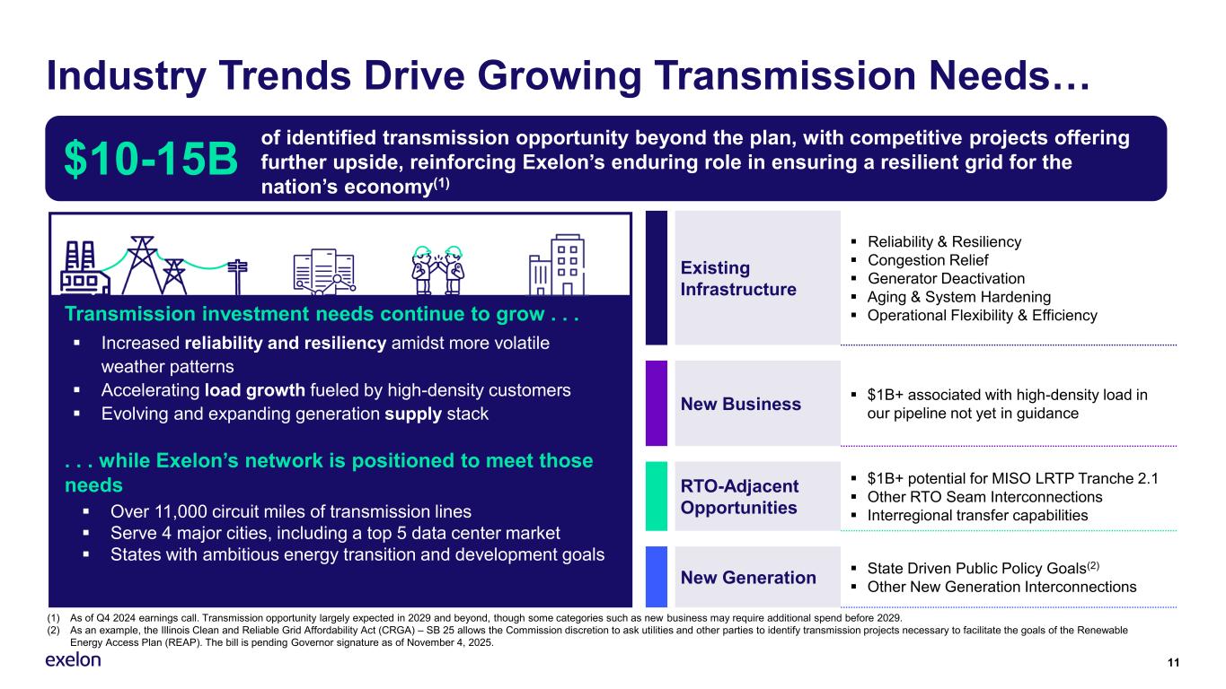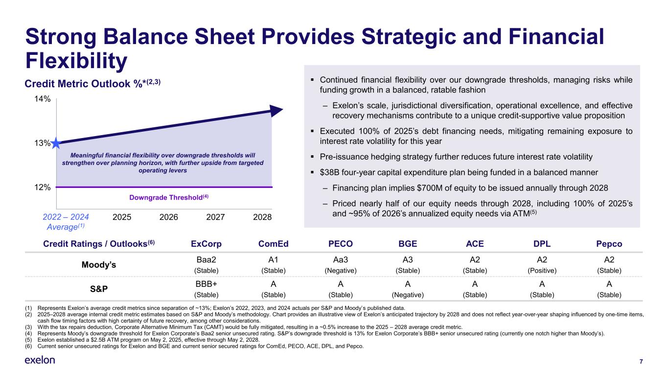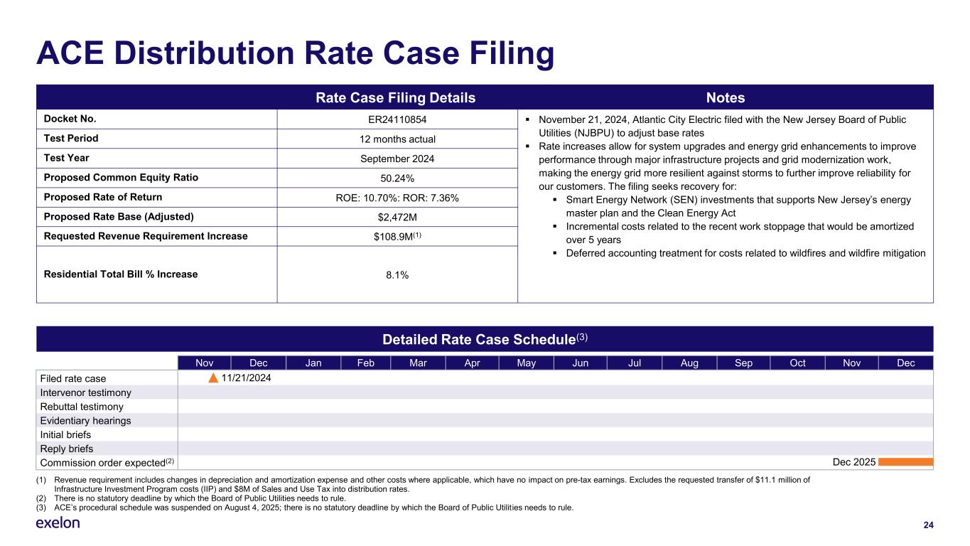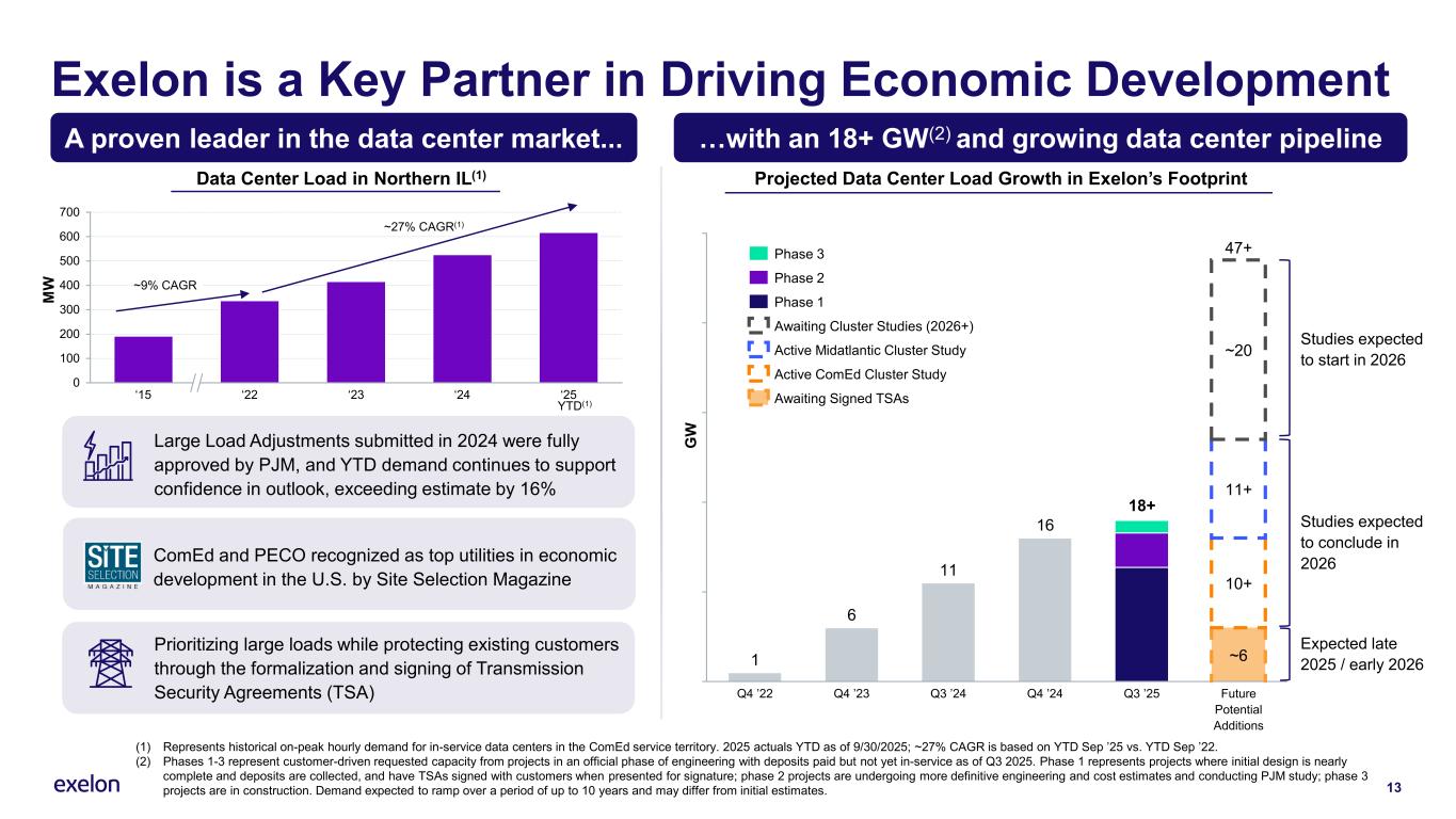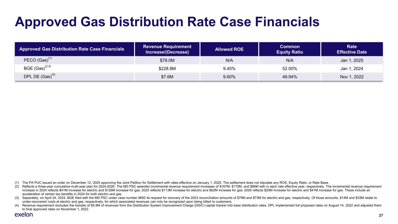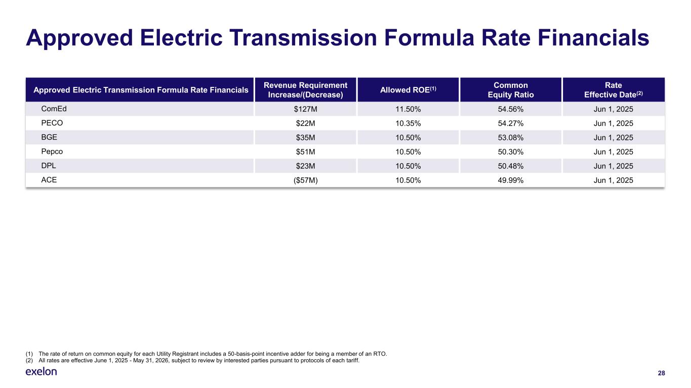 エクセロンの2025年第3四半期のGAAPベースの純利益は、2024年第3四半期の1株当たり0.70ドルから0.86ドルに増加した。2025年第3四半期の調整後(非GAAP基準)営業利益は、2024年第3四半期の1株当たり0.71ドルから0.86ドルに増加しました。GAAPベースの純利益と調整後(非GAAPベース)営業利益の調整については、4ページ以降の表を参照。