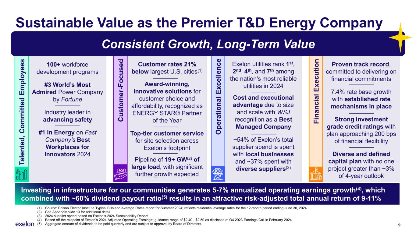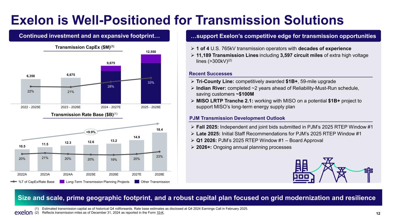 「エクセロン社長兼最高経営責任者(CEO)のカルビン・バトラーは、「エクセロンが当四半期も堅調な営業・財務実績を達成したことをご報告できることを嬉しく思います。「多くの企業がコスト削減の圧力に直面している今、私たちは顧客支援と地域社会への効果的かつ効率的な投資に引き続き注力していきます。通期業績ガイダンスと長期的な成長見通しを再確認する中で、当社は引き続き、卓越した事業運営、規律ある財務執行、インフラの近代化を優先し、信頼性が高く手頃な価格のエネルギーを求める顧客のニーズに応えていきます。最も重要な場所で価値を創造するために、私たちのチームが日々成し遂げている仕事を誇りに思います。
