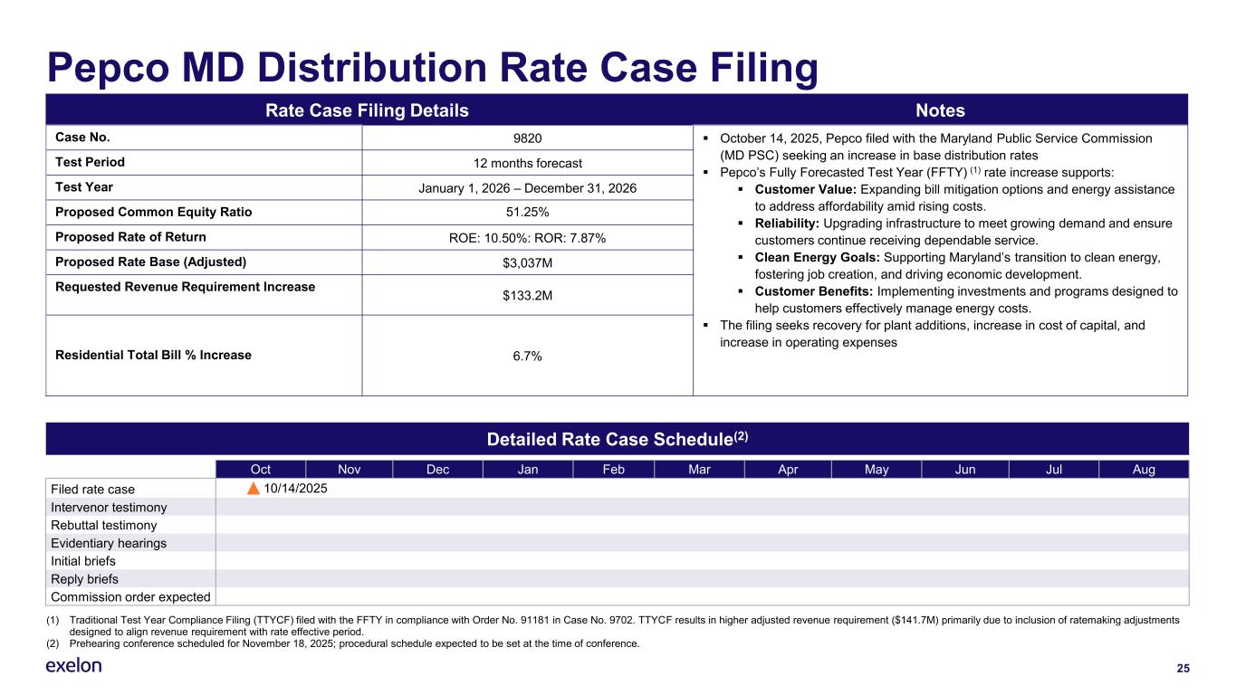 -ペプコ社は10月、メリーランド州公共サービス委員会に配電料金訴訟を提出し、老朽化したインフラを近代化し信頼性を向上させるため、2026年に計画されている主要インフラ投資を支援するよう要請した。