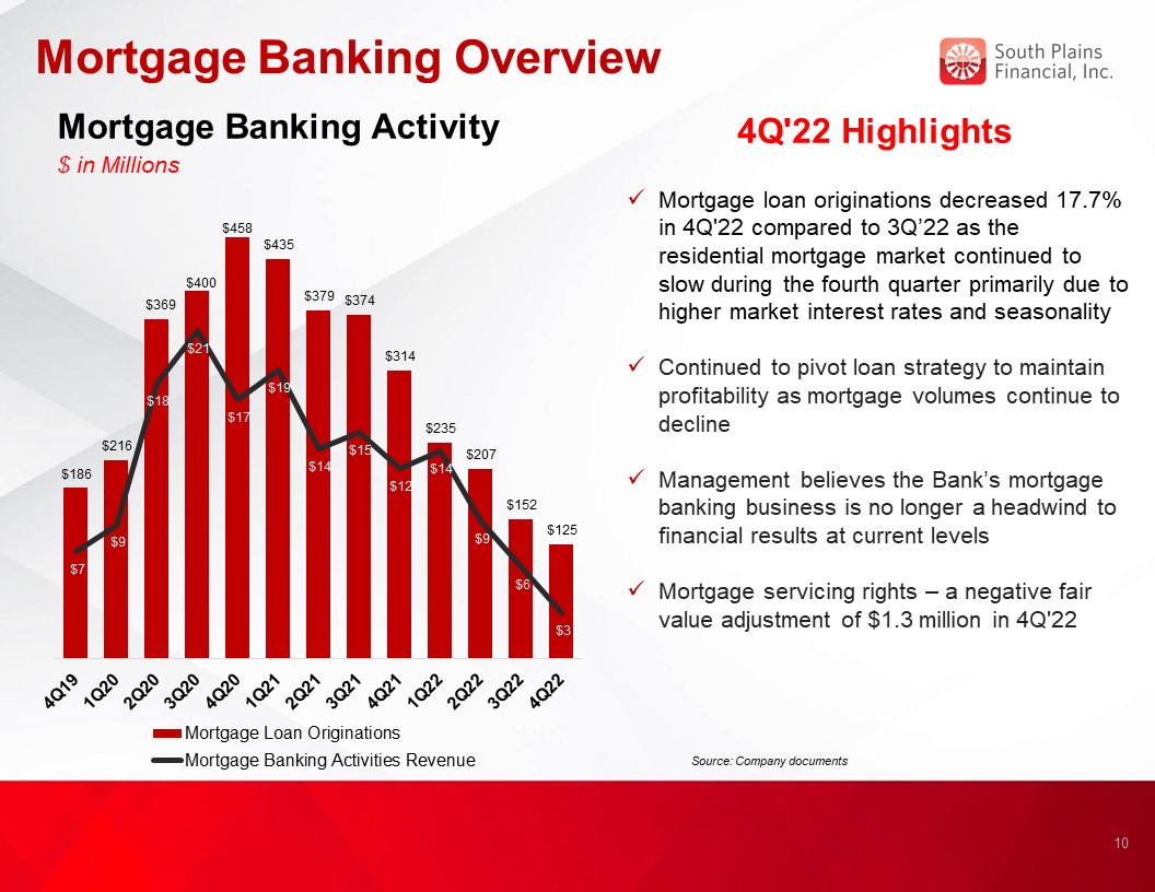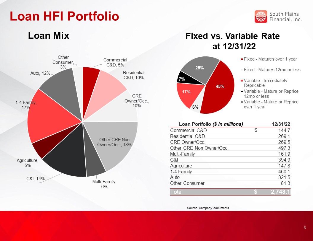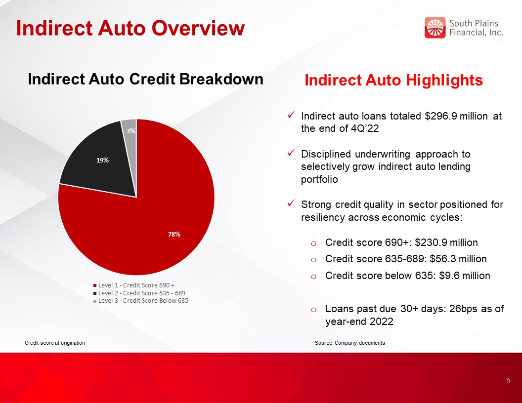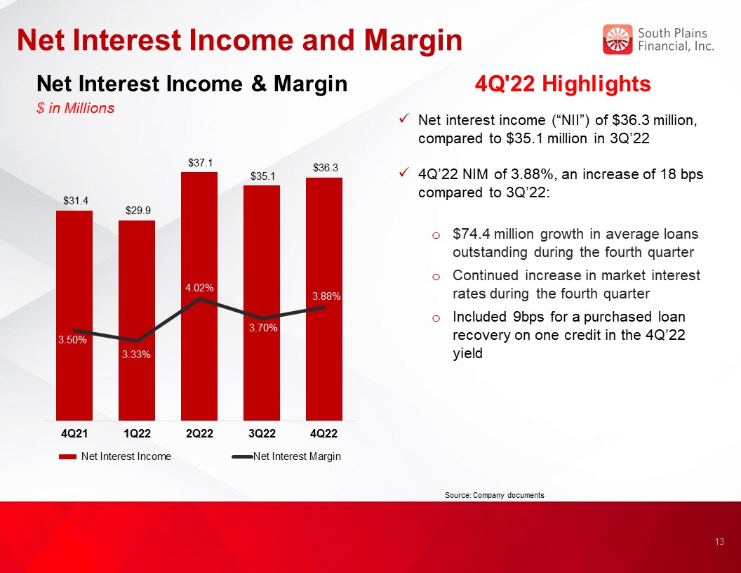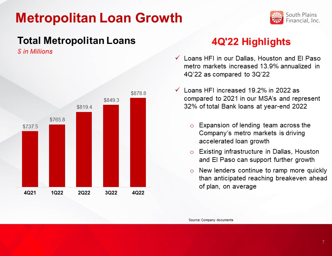 LUBBOCK, Texas, January 26, 2023 (GLOBE NEWSWIRE) - City Bank(以下「シティバンク」または「銀行」)の親会社であるSouth Plains Financial, Inc. (NASDAQ:SPFI) (「サウスプレインズ」または「当社」)は、本日2022年12月末の四半期および年間の決算について報告しました。